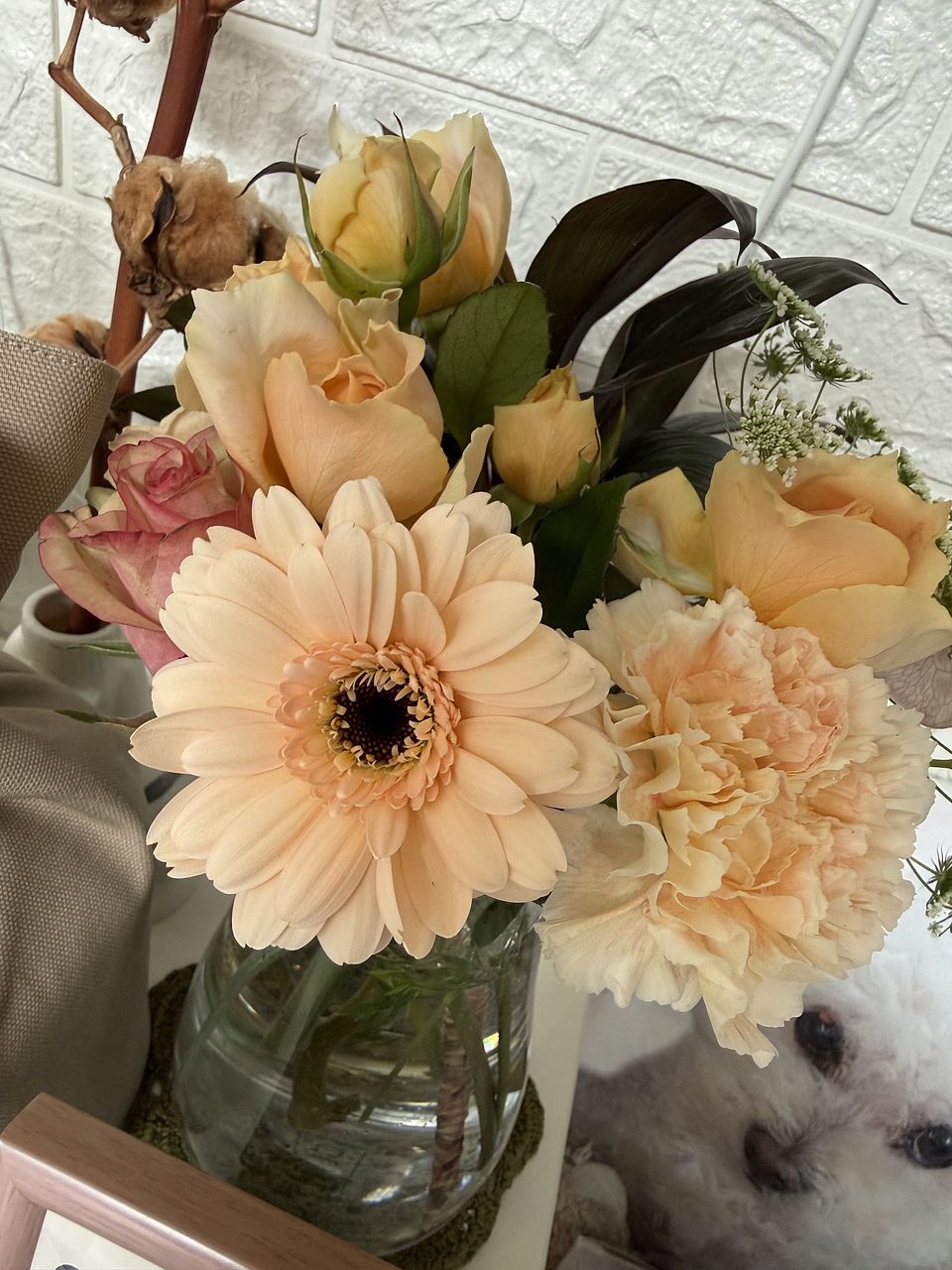 ふわふわのブラウンコットンを添えた、ミルクココアカラーのおまかせブーケ🥛🍫