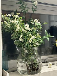 白くて小さなお花がかわいい🕊️春の枝物「コデマリ」。だんだんと開花してゆく姿を楽しんで。