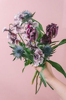 ネグリタパーロットのチューリップとエリンジウム、スイートピーを合わせて