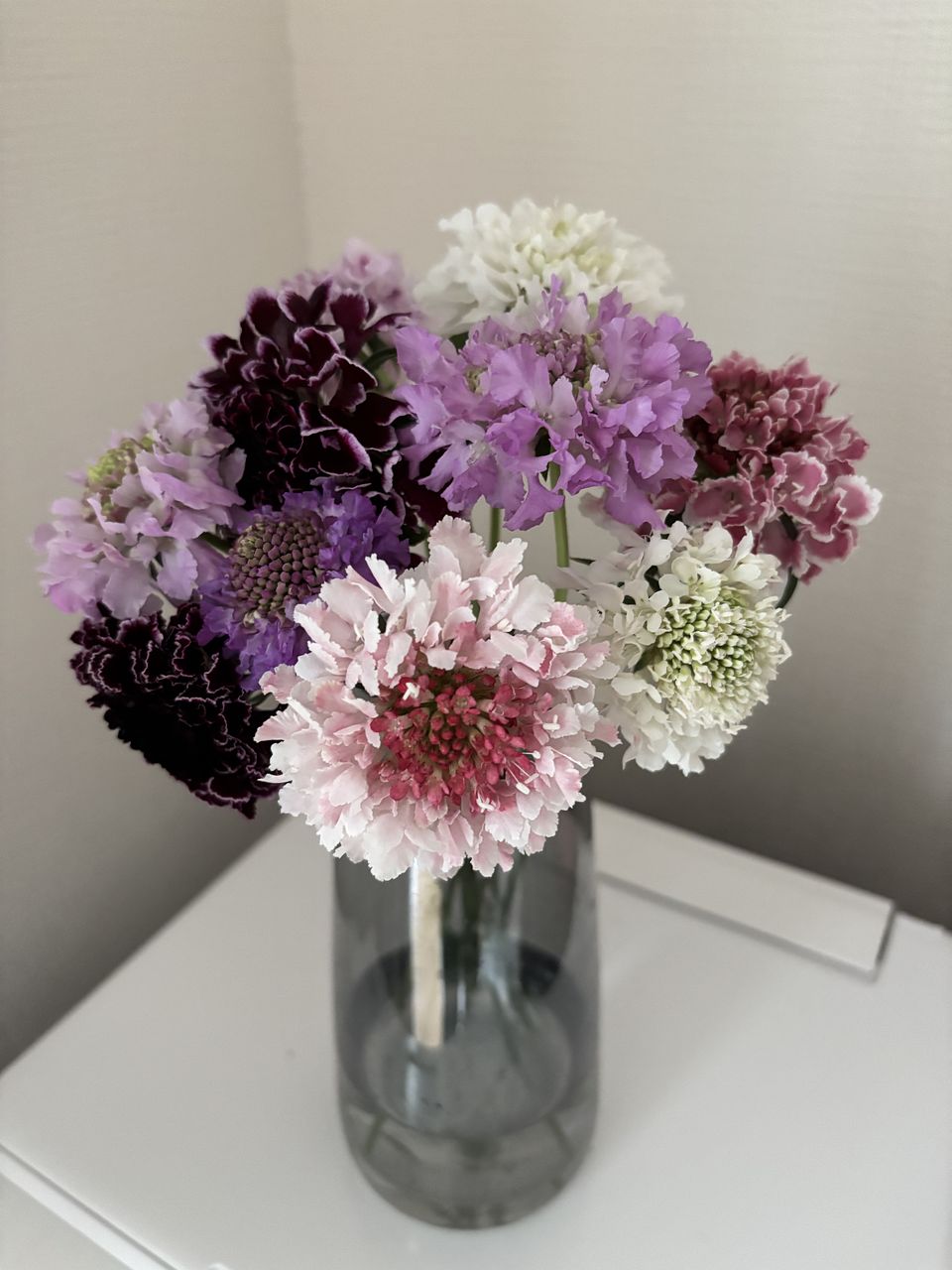 もこもこかわいいスカビオサを束ねました💐色の組み合わせは届くまでお楽しみ😍