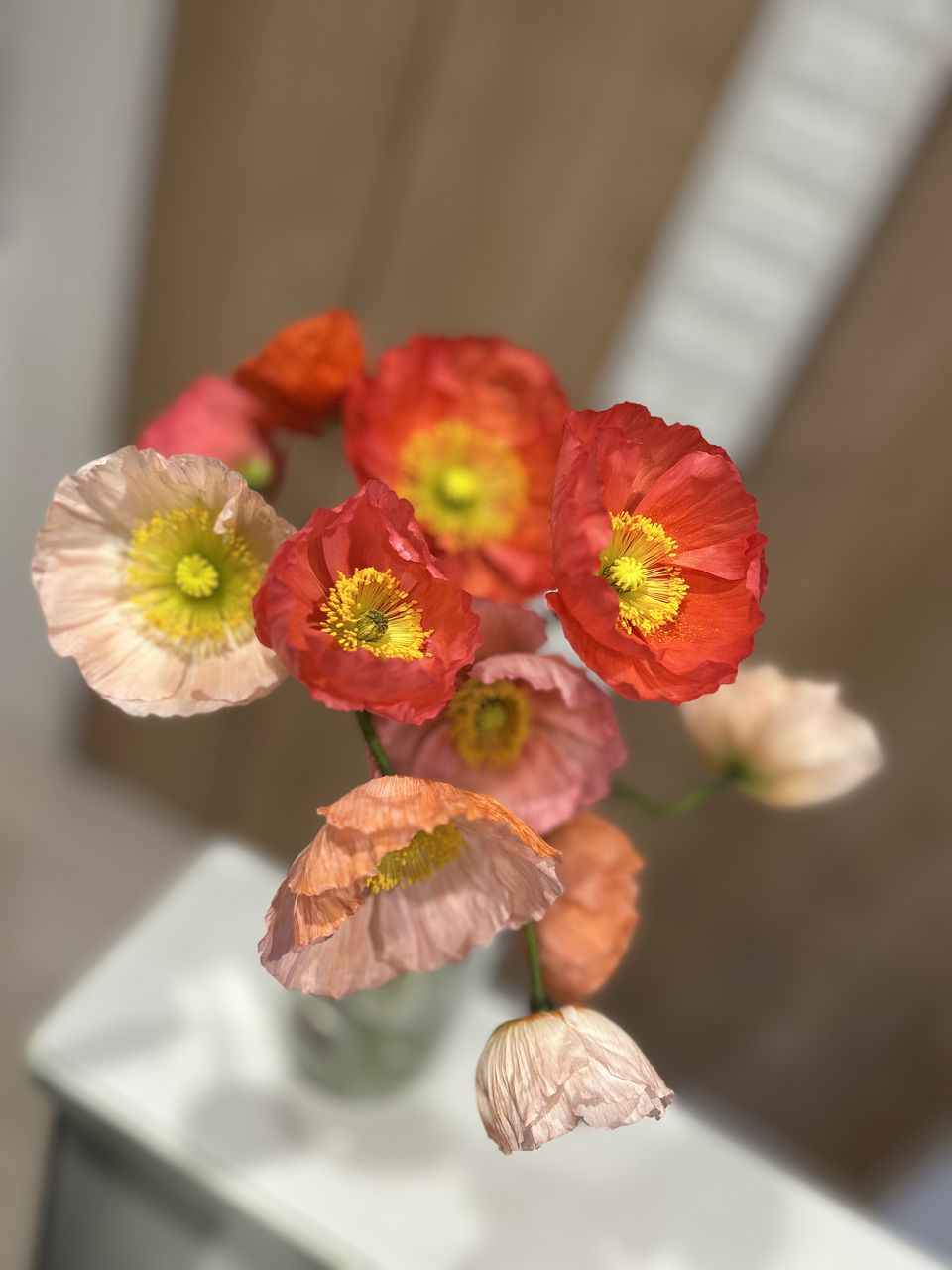 ポピーの季節がやってきました!おじぎをしたような蕾と、くしゃっとした花びらが愛らしいお花🌼