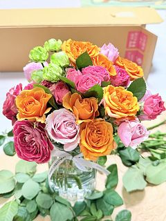 スプレーバラなのでボリューミーで華やかなのは良かったです。 「厳選」とのことで大人っぽいカラーや、珍しい色、繊細な取り合わせを期待していたのですが、ピンク!黄色!レッド!!!で全体として色がガチャガチャしており、センスを感じませんでした。同じ時期に届いたであろう方のお写真と比べ、その点が特に残念と感じました。