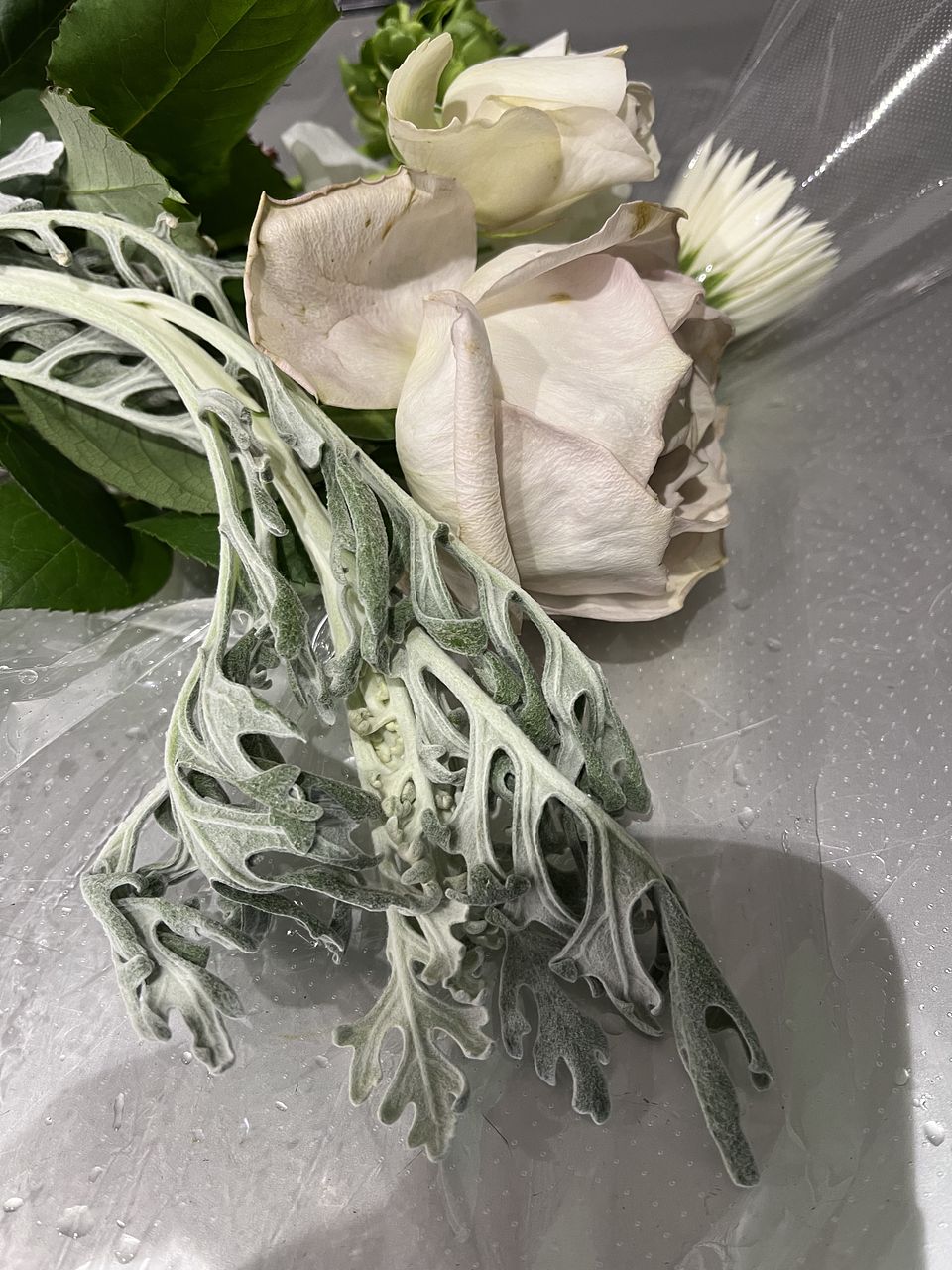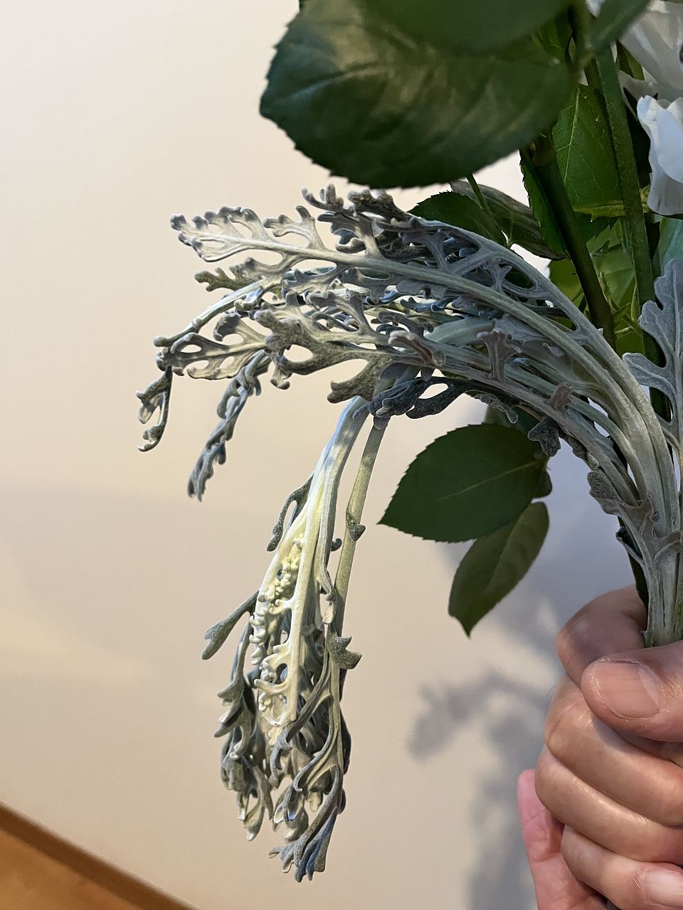期待通り白いだけじゃなくグレイッシュホワイトで素敵な花束でした