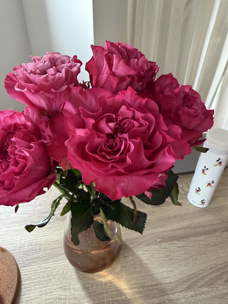 こんなに茎が太く大きいバラがあるんですね!写真よりピンク寄りなのがちょっとイメージと違いましたが、華やかさは大満足です。長持ちしてくれますように。