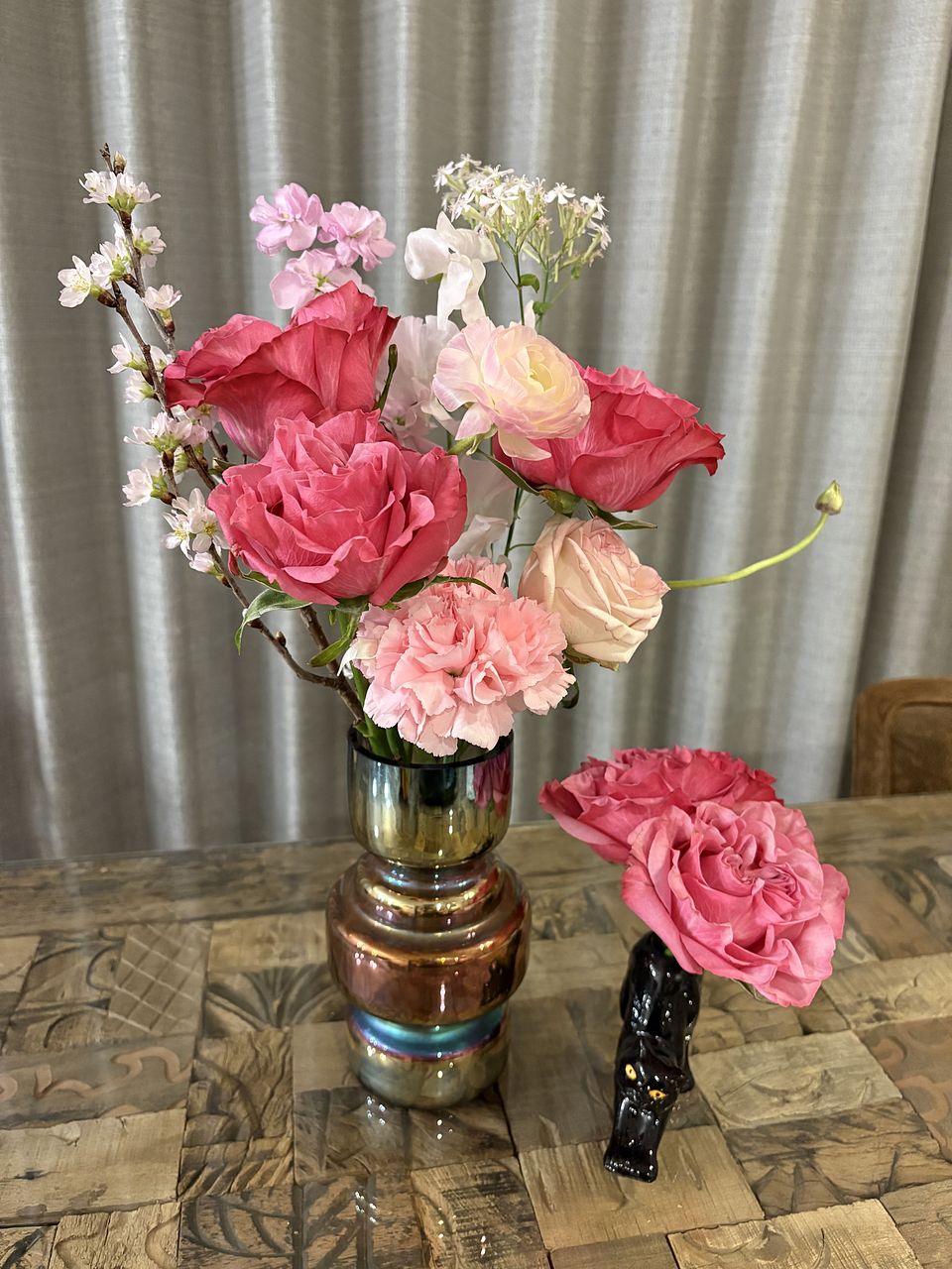 お花は美しいけれど、枯れている葉や花びらがありました。あまり花には詳しくないので、あんなものなのかは不明です。枯れている部分はハサミで切りました✂️ 花瓶は気にいりました。