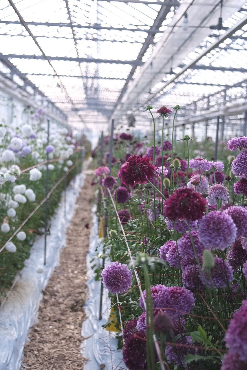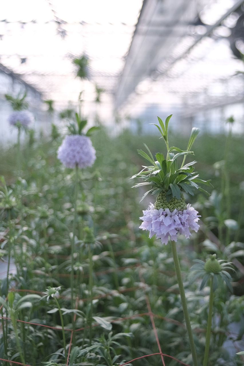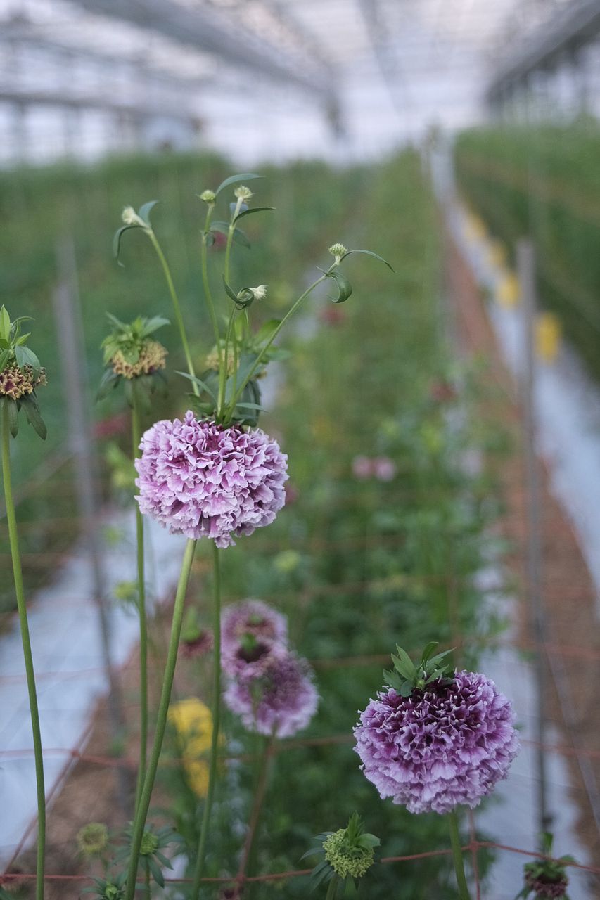 圃場の様子です。背丈くらいまで高く伸びた立派なスカビオサ