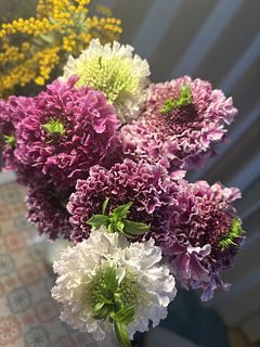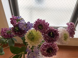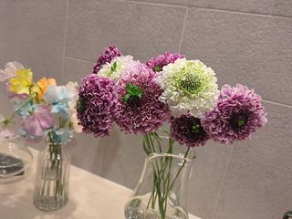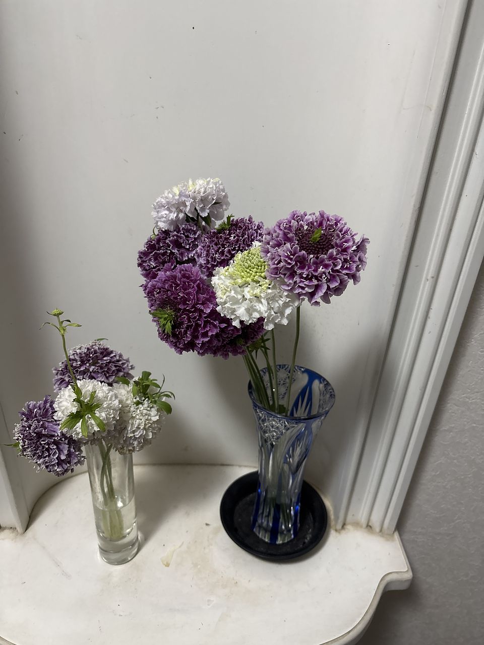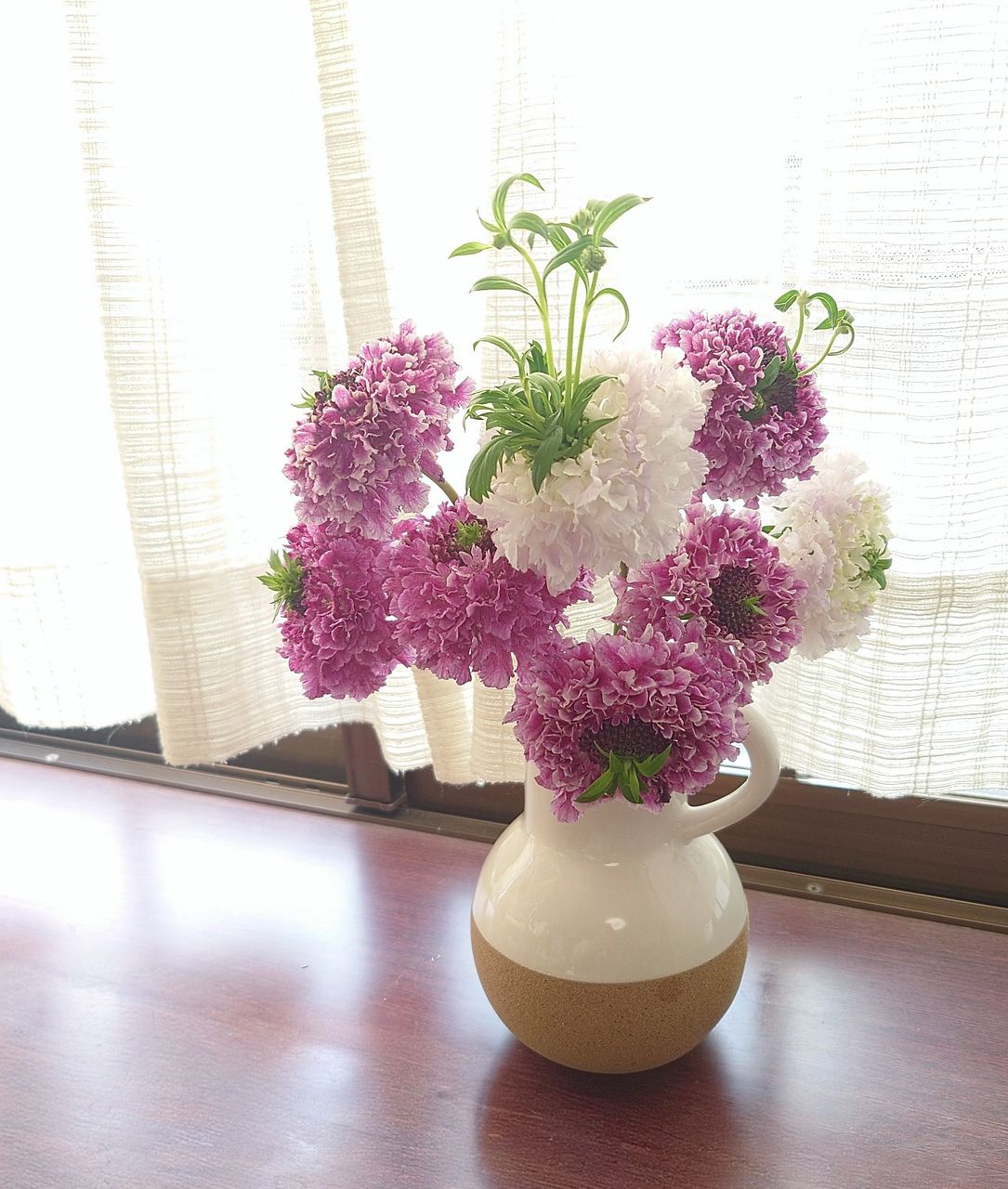 8本中大きめの3本だけはシャキーンとしていますが、あとの小さめの5本はちょっとうなだれ気味…みなさんのスカビオサはみんなシャキーンとなってるようで羨ましい…届いた日に新聞紙をまき水揚げしましたが全然ダメ、次の日に湯揚げして少しだけ元気になった気もしますが、まだ花びらにハリがなくしおれてしまわないか不安です。今日の朝も時間ない中湯揚げしてきましたが、夜帰ってどうなっているか心配…ここってどの程度で保証してくれるのでしょうか?(´;ω;`)
