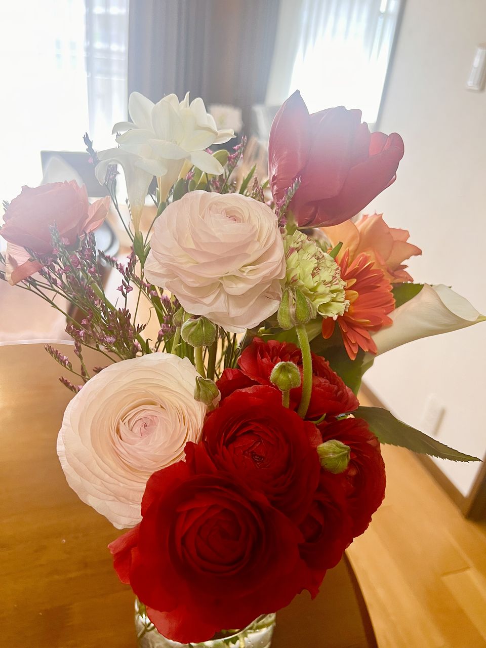 お花は長旅でお疲れぎみ。届いたら水揚げをしてたっぷりお水を与えてあげましょう。お花屋さんになった気分でお手入れしてみて😉