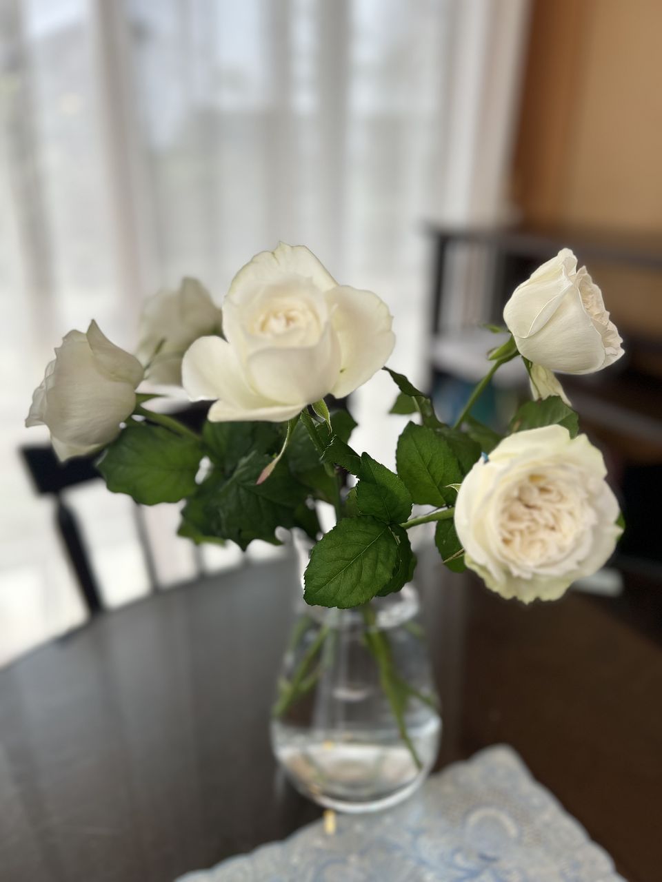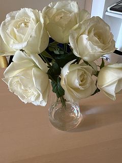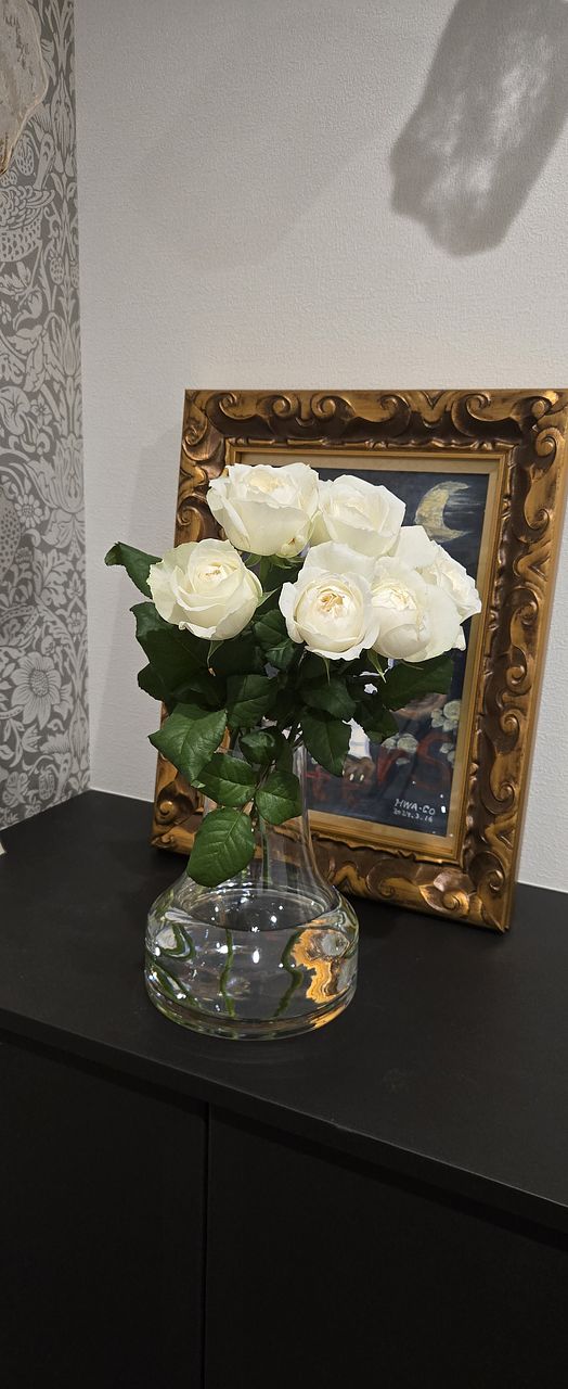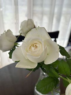 とても香りも良く、真っ白なバラで素敵でした。 家にグリーンの葉物があったので組み合わせて飾ってみました。癒されます🥰