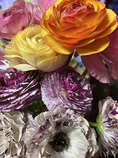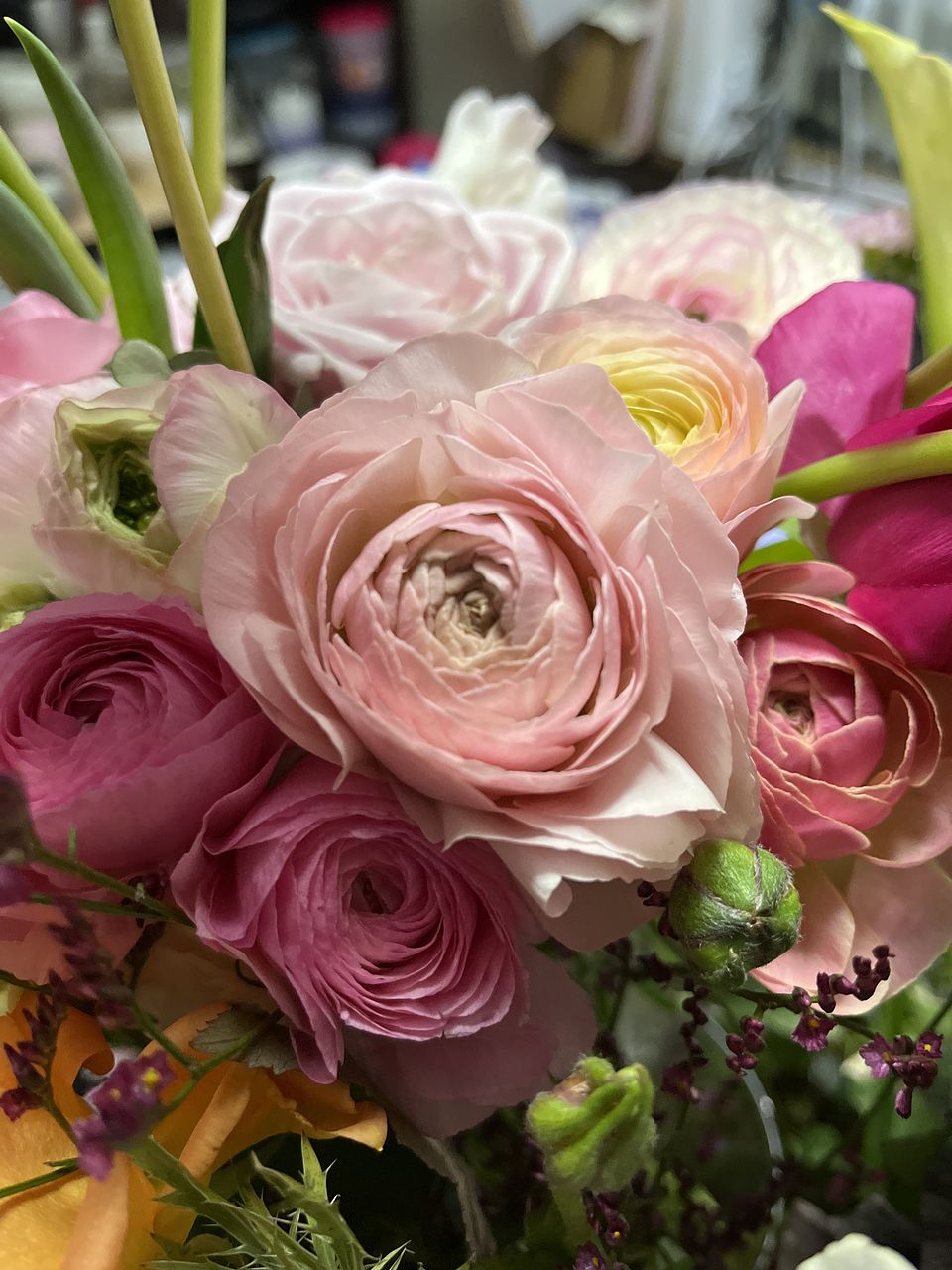 いろんな種類のラナンキュラスが入っていていつも嬉しくなります。花が開いてきた頃に寄せ集めて顔をうずめるのが好きです🤭香りもほんのりあって大好きな花です。