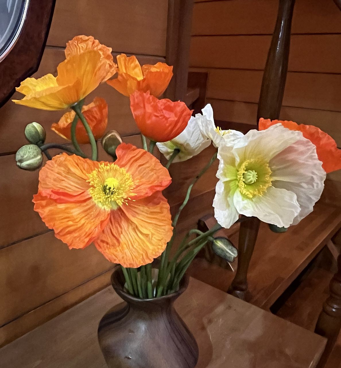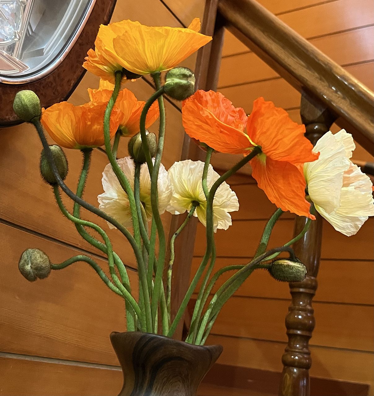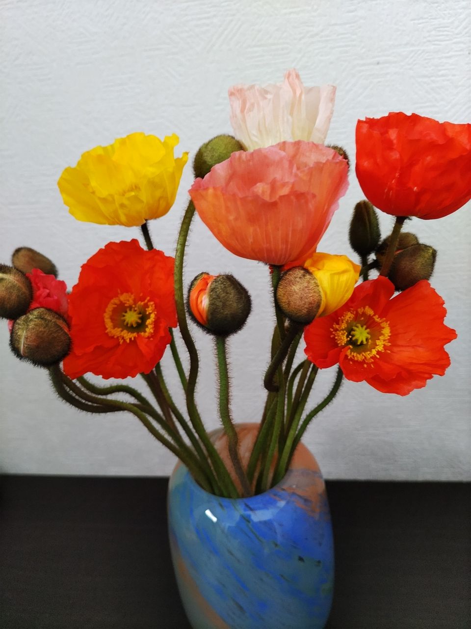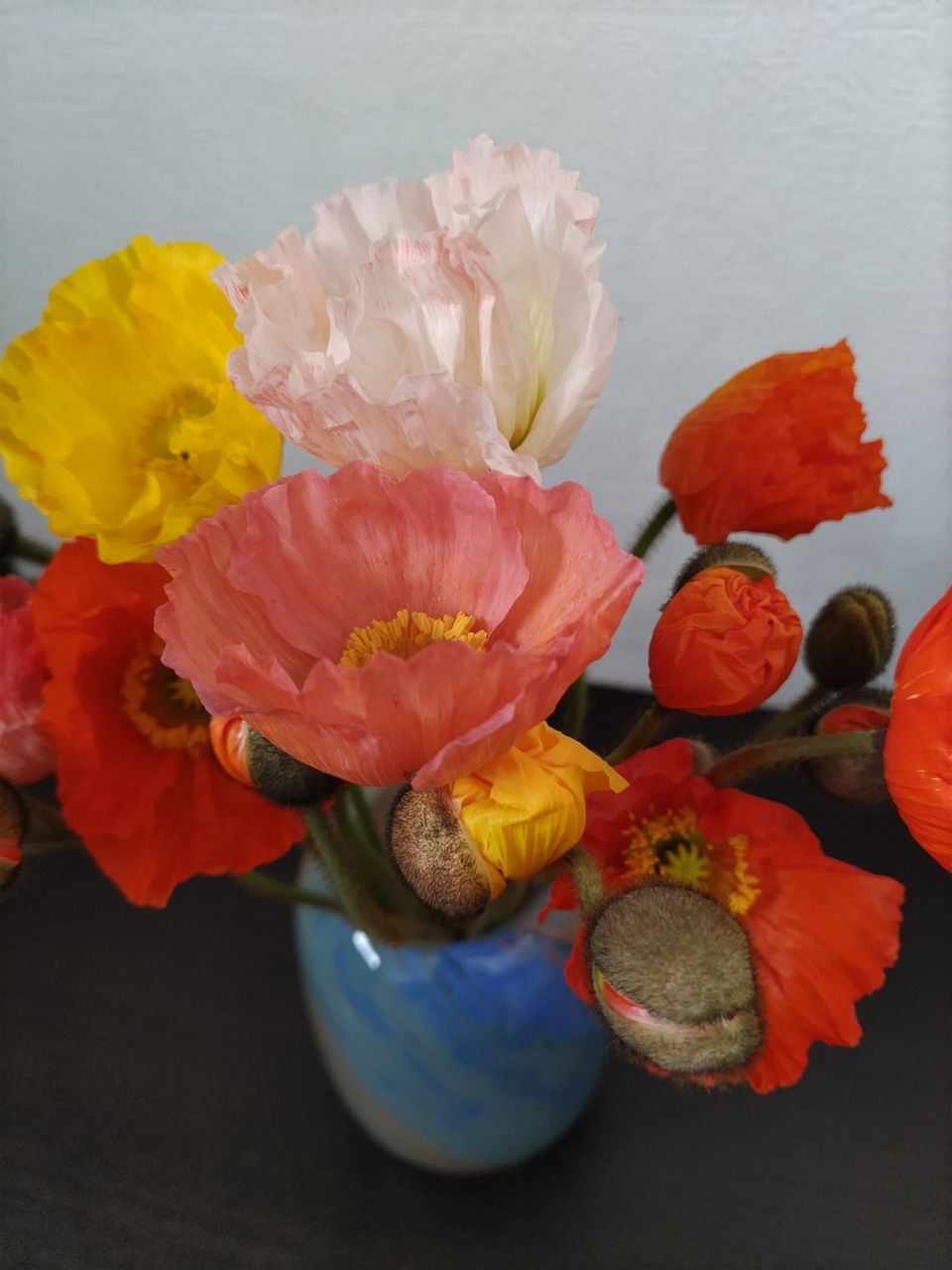 気まぐれと名付けた方がすてき。うにっと曲がってよそ向いてたり、下向きなのかと思えば上向き始めるし、朝に蕾からはらりと「上着」を落としたかと思ったら、昼頃には開いて開いて大きな花びらの、なんて大胆な鮮やかな色、なんて柔らかな優しい色、見事過ぎる可愛いさ…時間差「はらり」も楽しめて、この魅力にたまらなくなりましてリピートしてしまいました。