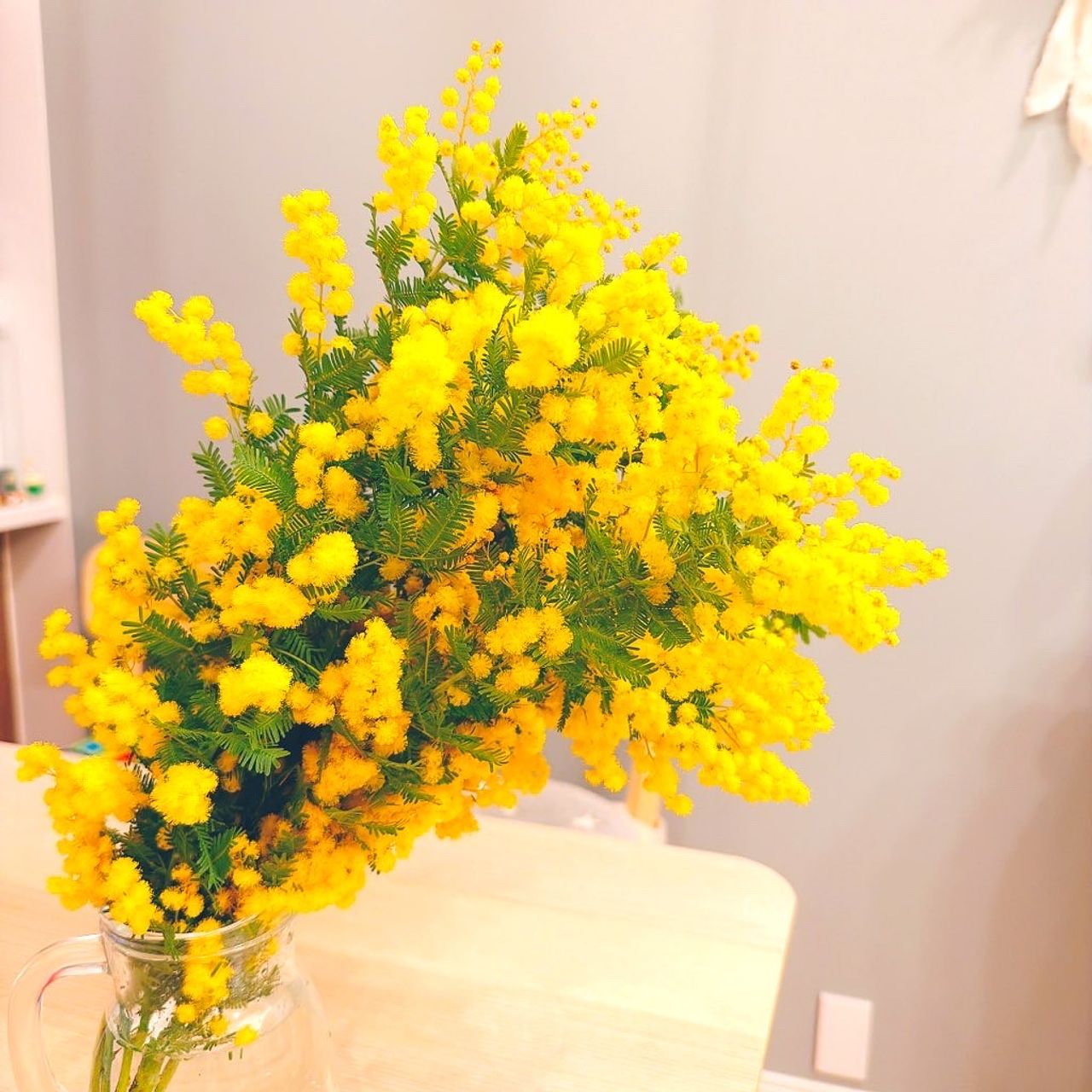 黄色いお花がかわいい💛人気のミモザをたっぷり7本束ねました!