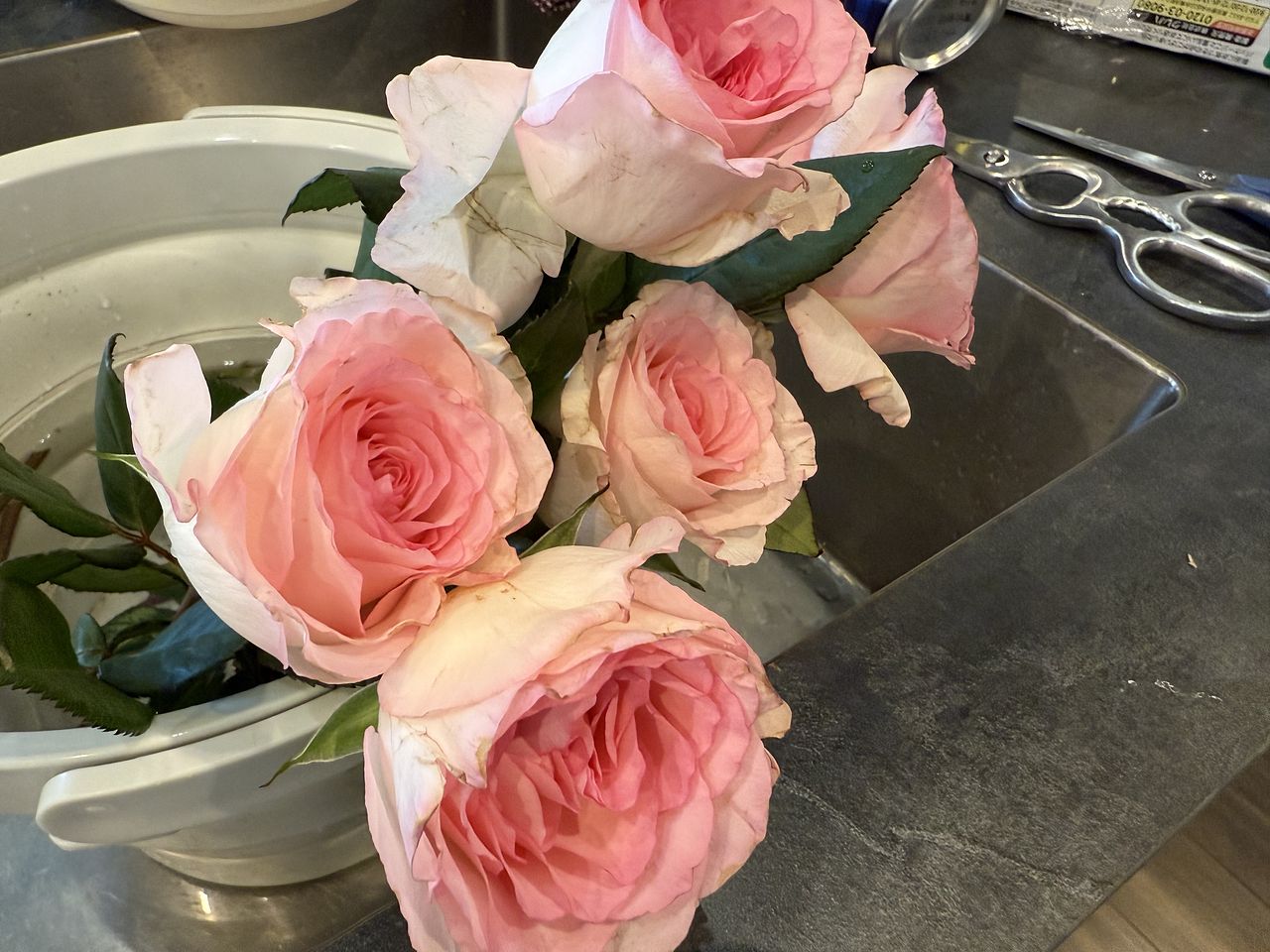淡いピンクのバラがとても上品で可愛いです。 花も新鮮で、飾るだけで気分が明るくなりました。大満足です。