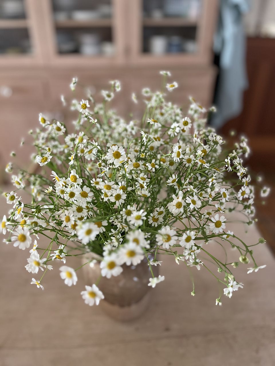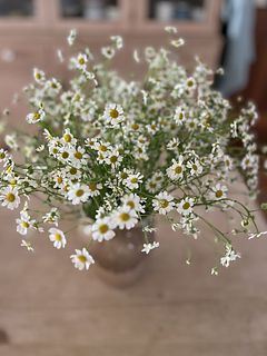 ふわふわゆれるマトリカリア「シングルペグモ」をたっぷりと束ねました。