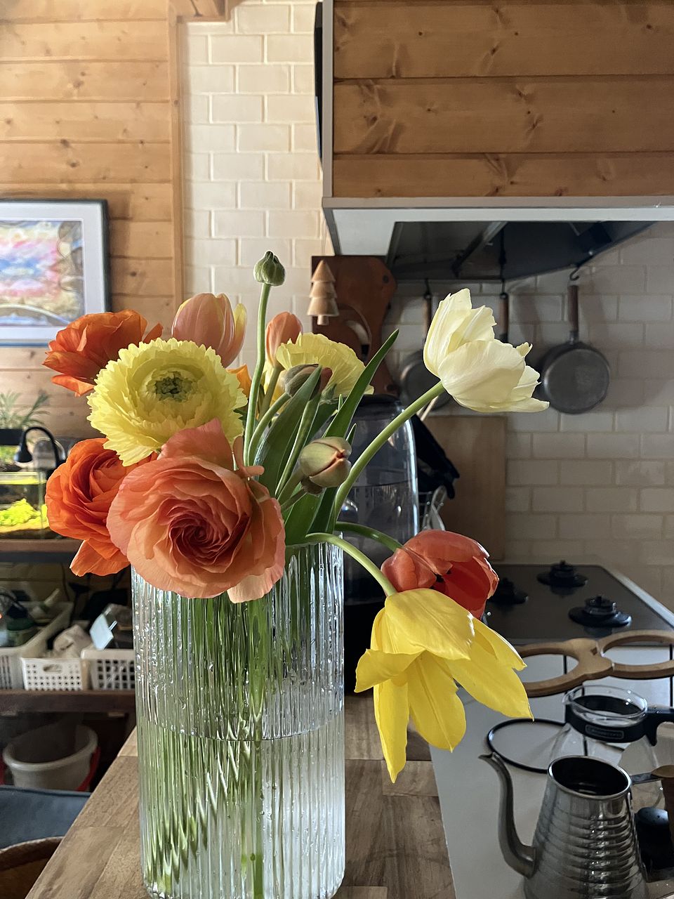 イエロー、オレンジ、クリーム色など心が暖かくなる春のアソート🍊🍋表情のちがうチューリップとラナンキュラスをたっぷり集めました🌷