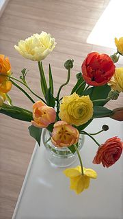 自身の誕生日に自分で贈りました。笑 お花屋さんのように「同じお花をたっぷり飾る」というかねてからの夢を叶えてくれました! イエロー〜オレンジの様々な濃淡があり、花器にバサッと活けるだけで表情豊か。数本分けて活けて、お部屋のあちこちに飛ばすのも可愛いです。 鮮度も良く梱包も丁寧。たっぷり届いてこのお値段は本当に素晴らしいと思います!