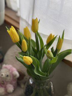 しっかりした蕾のチューリップでした! これから咲いてくれるのが楽しみです。 黄色が春を感じて部屋が明るくなります!