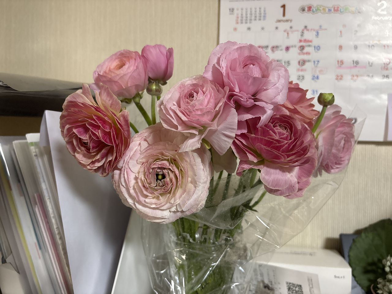 箱を開けた瞬間、きっと「かわいすぎる!」と声が漏れてしまうかも?ぽっと頬を染めたようなピンク系のおしゃれなラナンキュラスを束ねました🩰