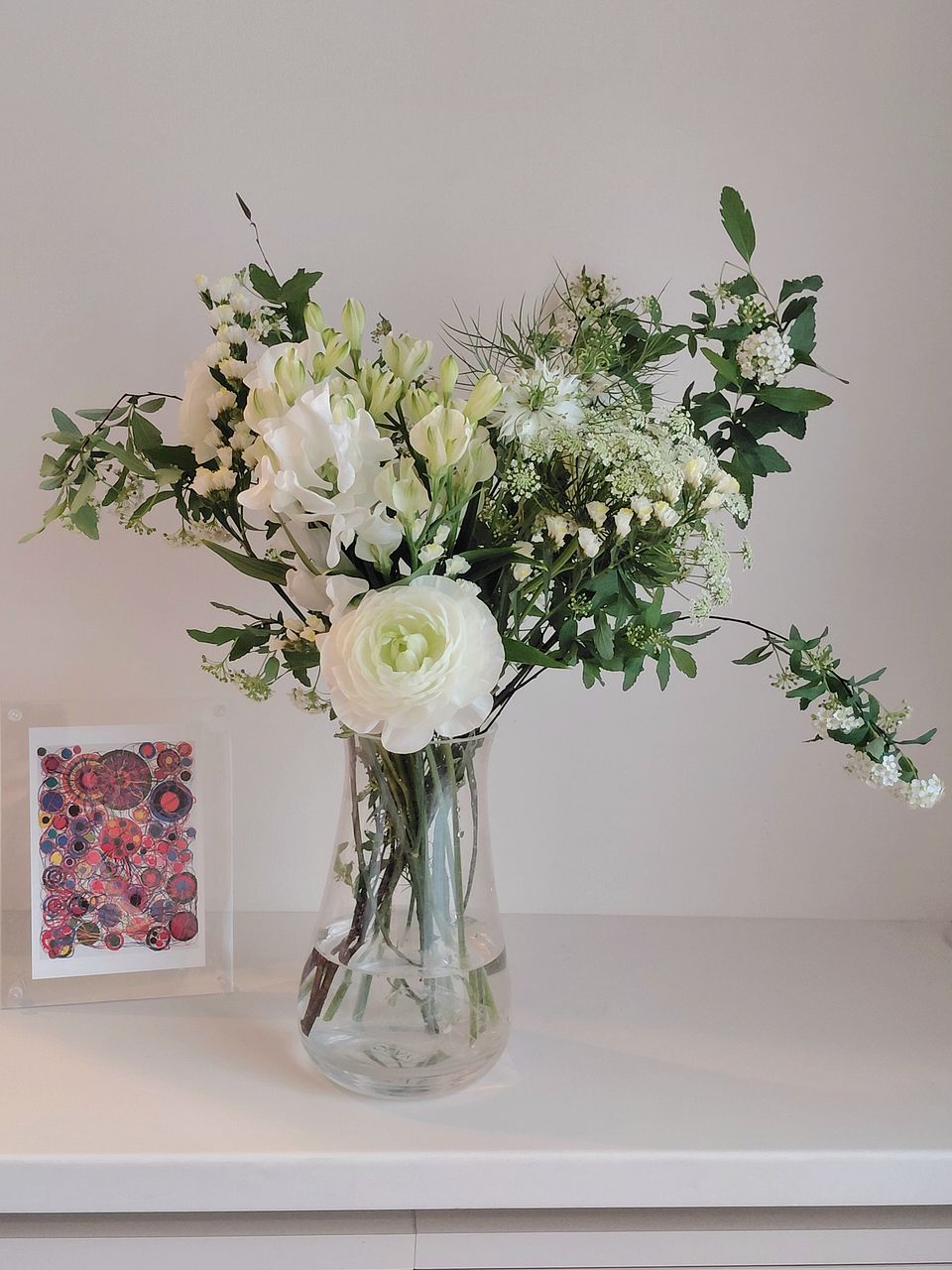 ナチュラルな花の組み合わせなのでどんなインテリアや花瓶にも合わせやすい!初めてさんにもおすすめです🔰