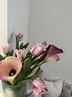 数日先におまかせチューリップが届く予定でしたが、合わせてもかわいいかなと追加注文しました。が… 🌷が予想外にいろいろ残念😢😞でしたので、カラーとも合わずどうしようか悩んだところ…