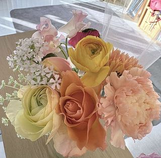 オレンジやイエロー、ピンクのお花を見るだけで気持ちがふっと和らぐような組み合わせにしてみました🍊