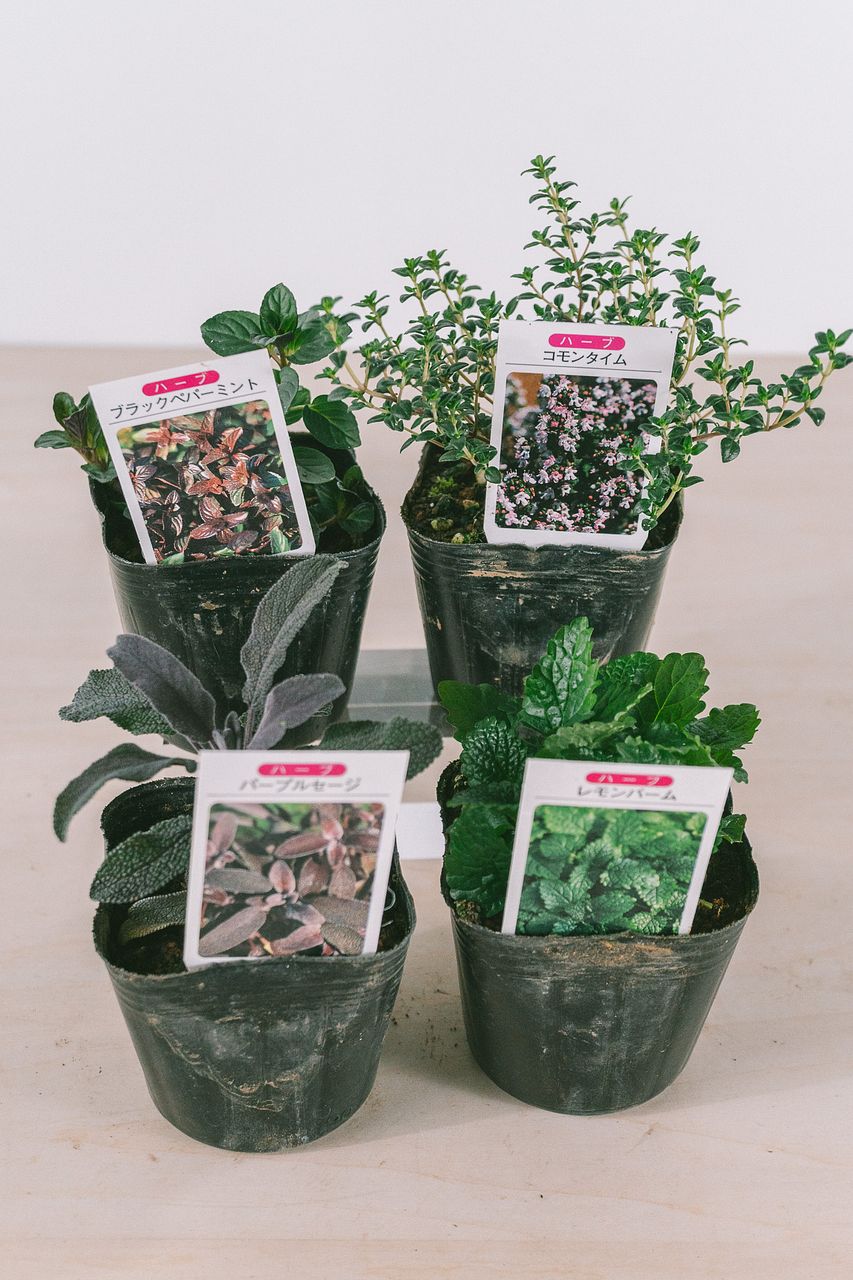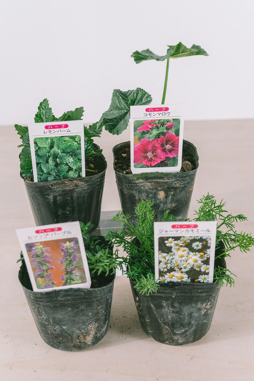 セージ / ミント / ヒソップ / レモンバーム / カモミール / タイム / マロウ / フォーバーユー などからおまかせで4鉢お届け