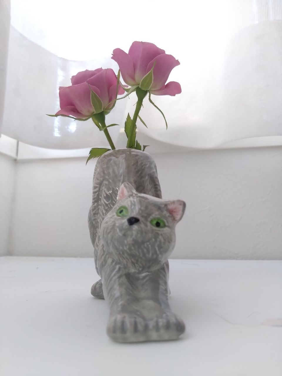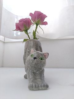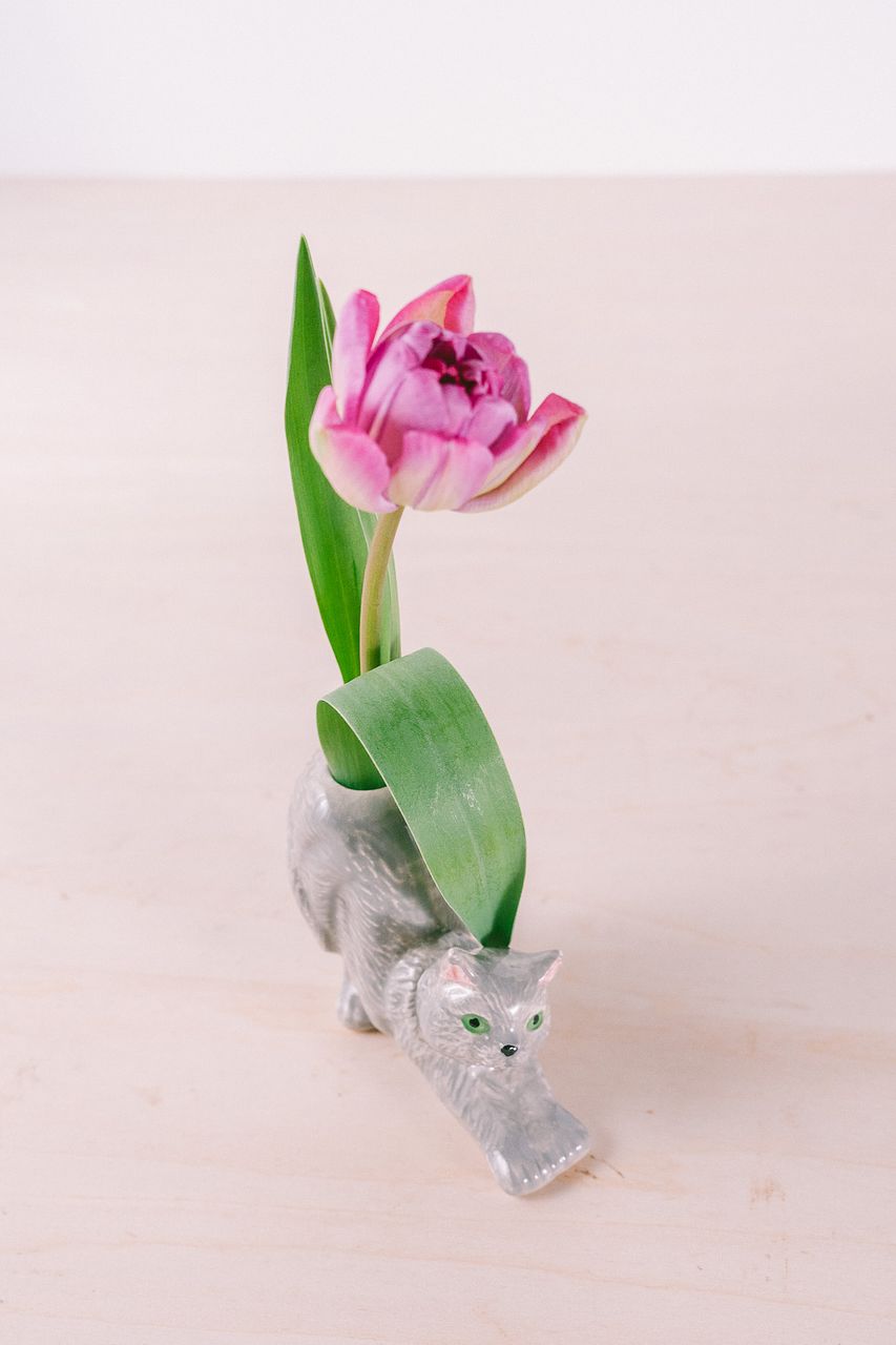 ネコ好きさん必見!前足をぐーんと伸ばした姿がなんとも愛らしい、グレーネコちゃんの一輪挿しが登場🩶