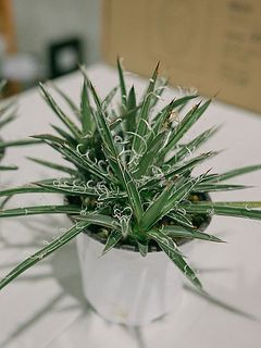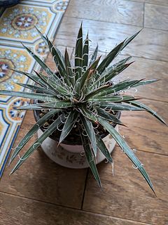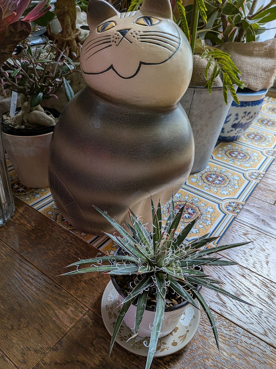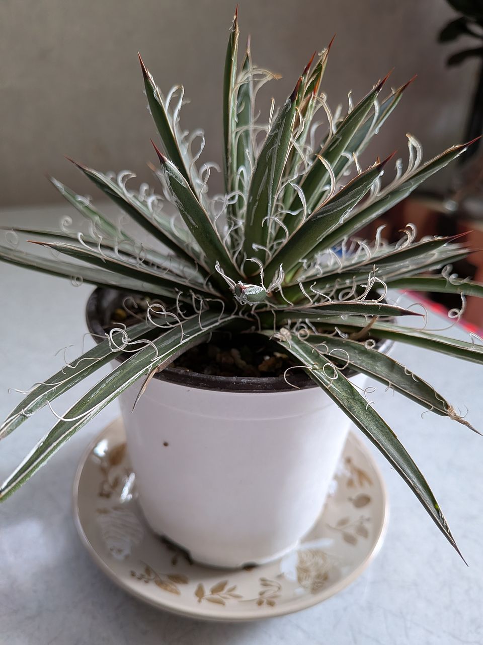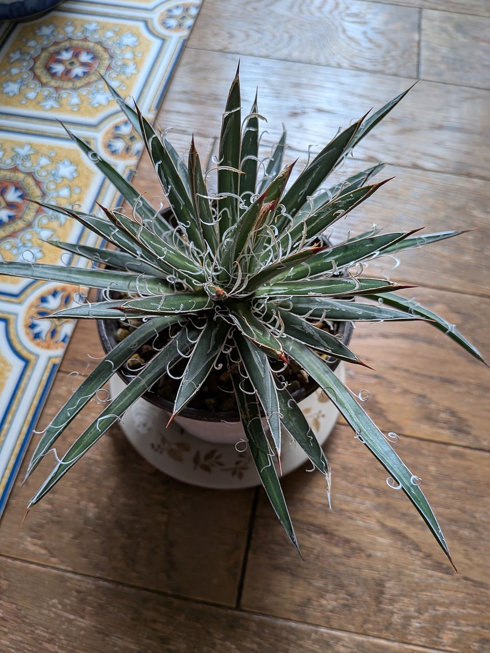 すっと立ち上がる葉と、整ったロゼット状のフォルムが印象的で、無駄のない美しさを感じさせるアガベ。
