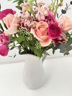 スパイラルに組まれていて葉の処理もしてあるのでそのまま飾って楽しめます。たっぷり入っているので華やかです。内容は毎回おまかせですが、色の雰囲気は同じ雰囲気でお届け予定です。お楽しみに!