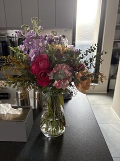 お花のボリュームもありとても素敵なブーケでした。 普段自分では選ばないお花の種類や珍しい枝物も多く入っていたのでもう少しこのまま楽しんだら痛み具合などみて小さなブーケに分けて楽しもうかと思います。