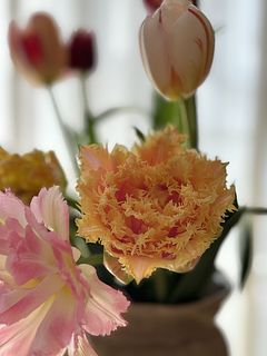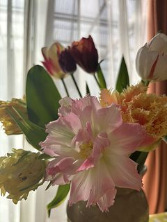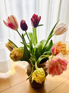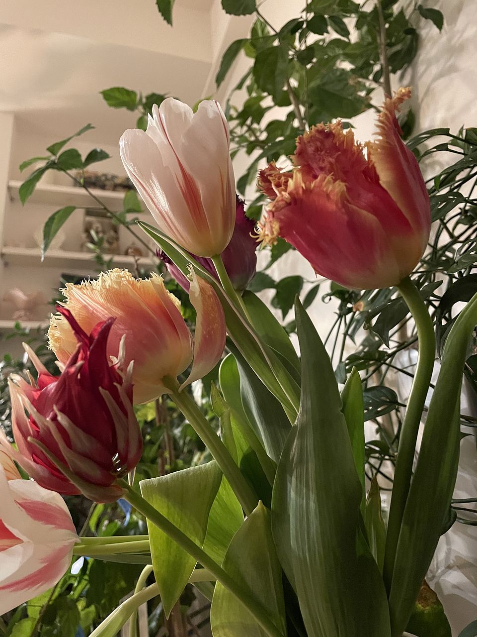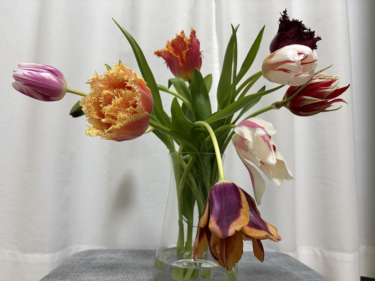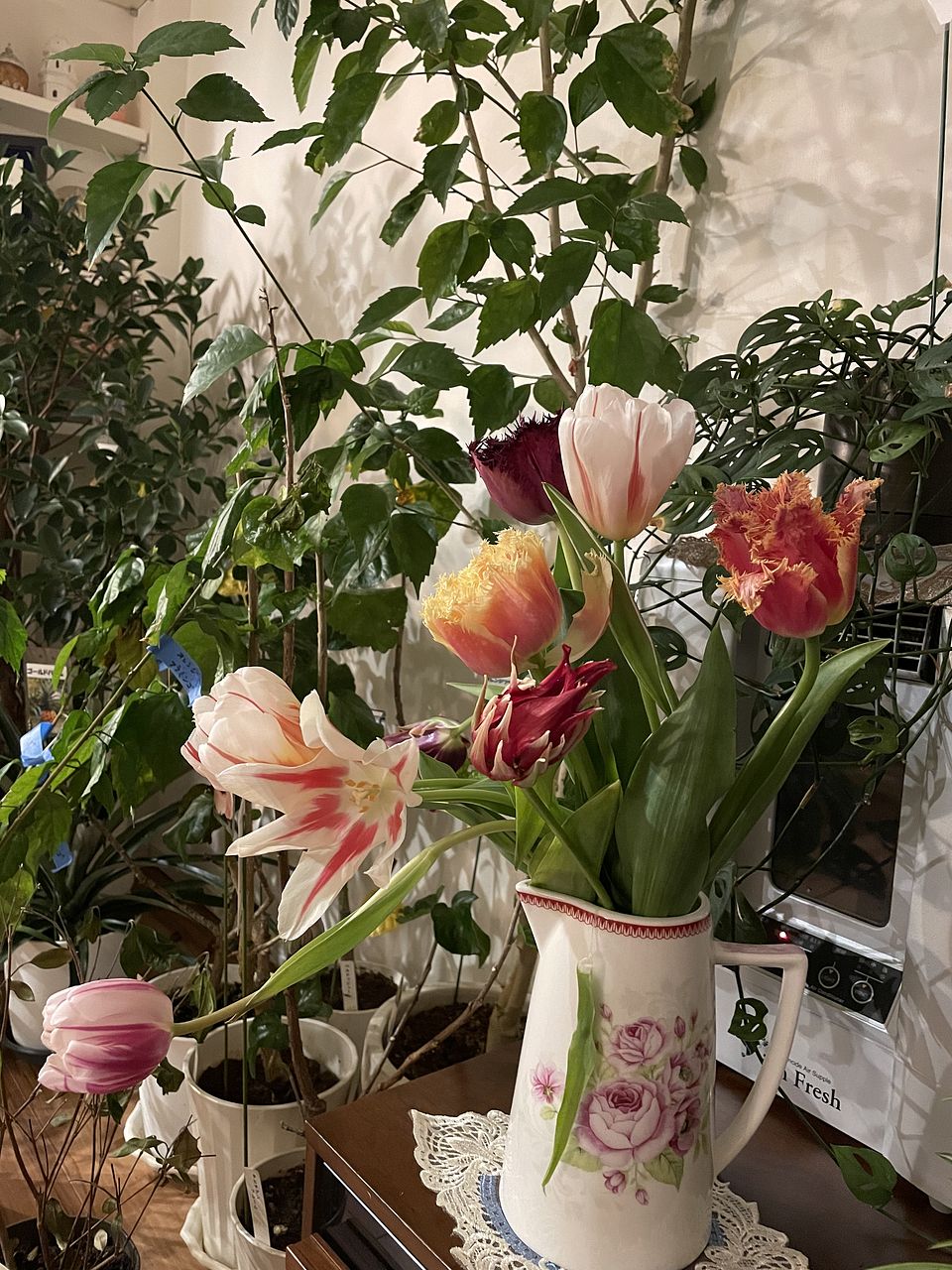 花が大きい子は手入れしている時に茎が折れやすく普通に花器に入れていても伸びてくると頭が重くて茎がポッキリ😱