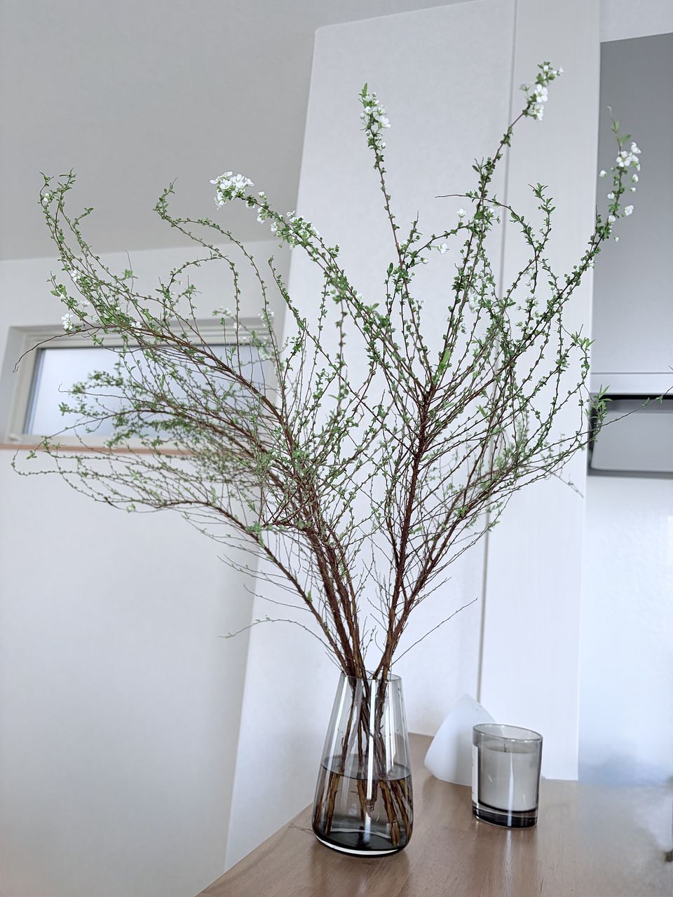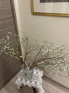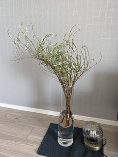届いたときは束ねられていたのでボリュームがあんまりかな?と思いましたがふわっと広げて飾ると結構な存在感でした!日に日に咲く小さな白いお花がとってもかわいいです🥹