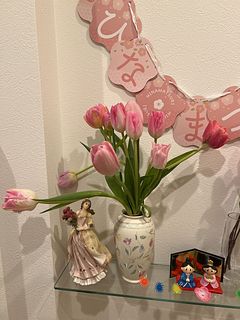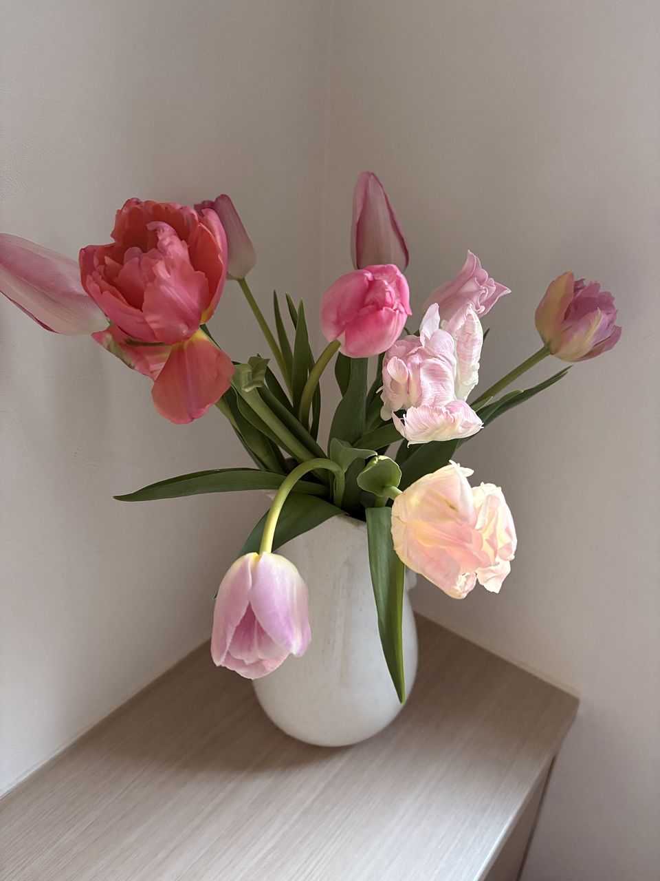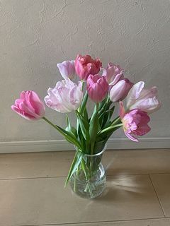 かわいい色です💕 パープルのチューリップも一緒に購入したので華やかに飾れました💜🩷