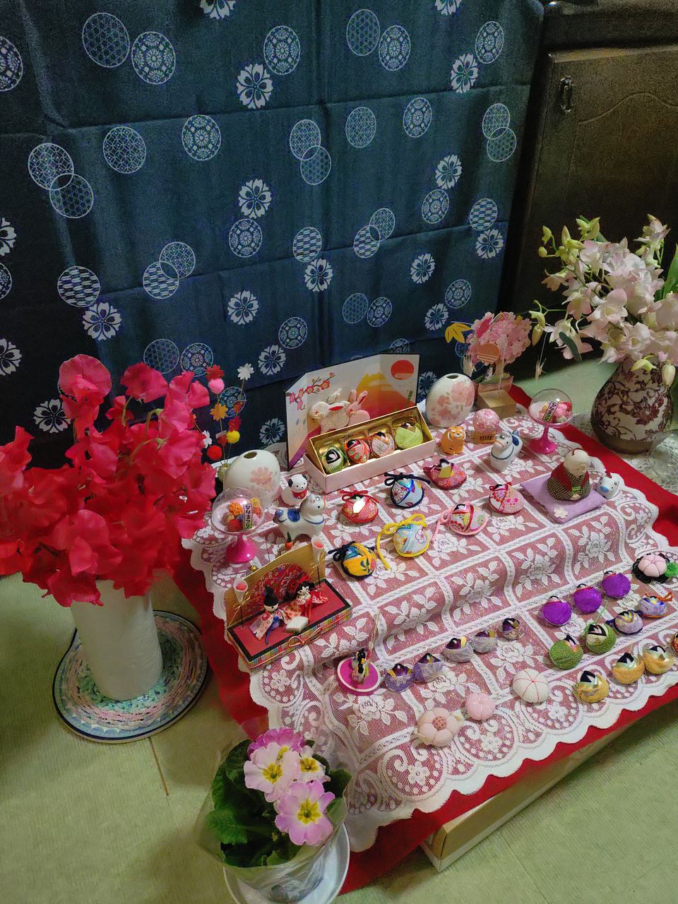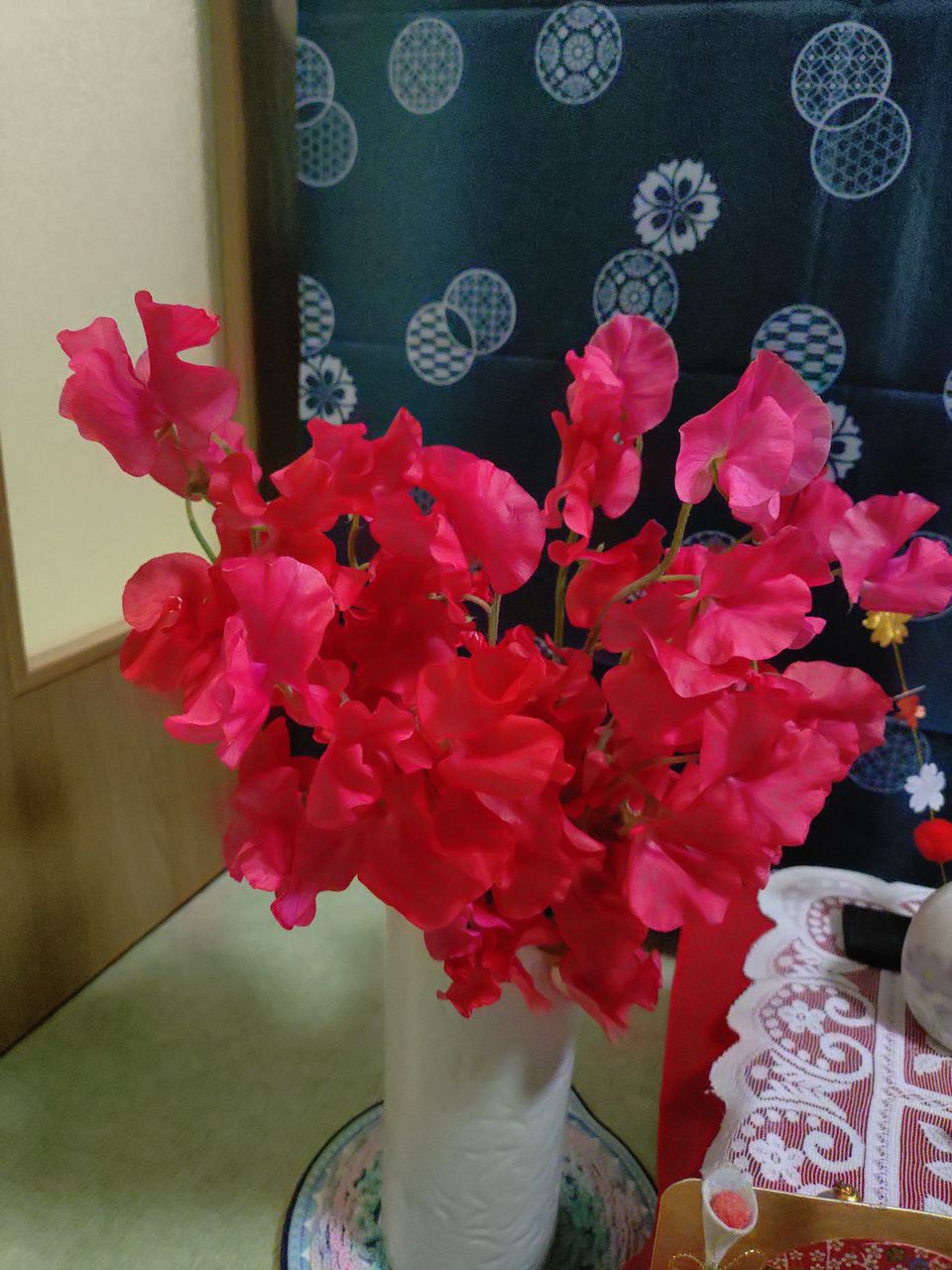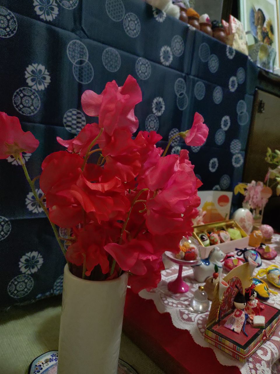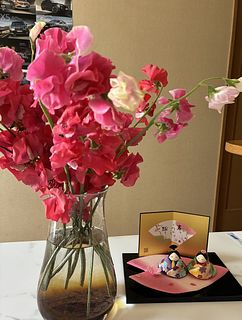 赤いスイトピー✨️ こんなに綺麗な色初めて見ました😊 🎎お雛様🌸と一緒に飾りました✨️