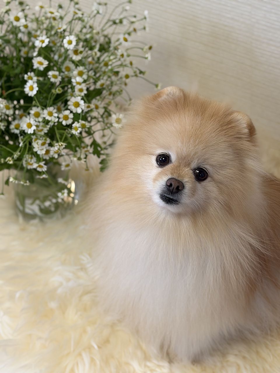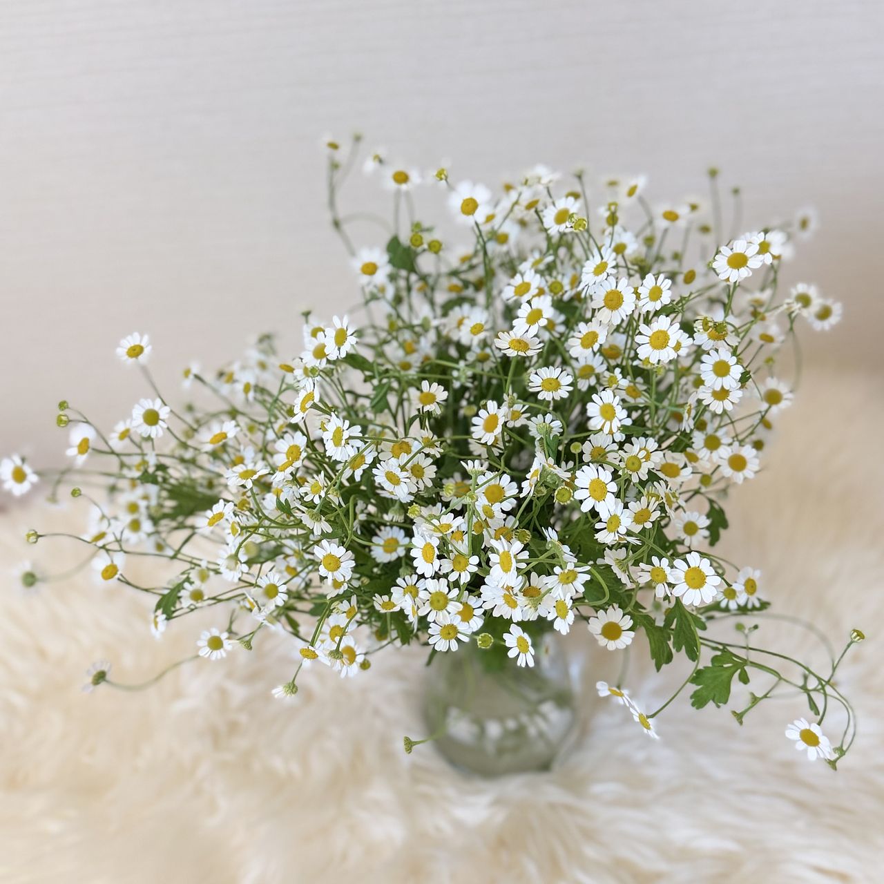 ふわふわゆれるマトリカリア「シングルペグモ」をたっぷりと束ねました。