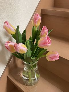 とても可愛らしいピンクのチューリップ🌷です。 部屋がとても華やかになっていいです。