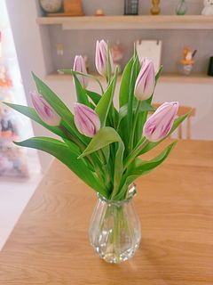 思ったより小ぶりかなと思いましたが飾ってみたら可愛いです。ここに黄色とかビタミンカラーのチューリップ追加しても可愛いかなと思います🧡💛