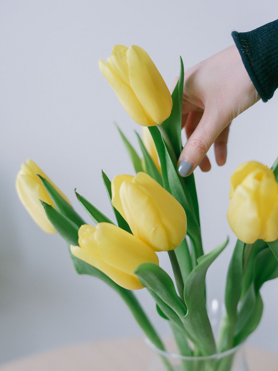 すっきり飾りたい方はシリンダー型のフラワーベースがおすすめ。チューリップの動きのある茎を活かすなら、口が広めのものを選ぶと◎