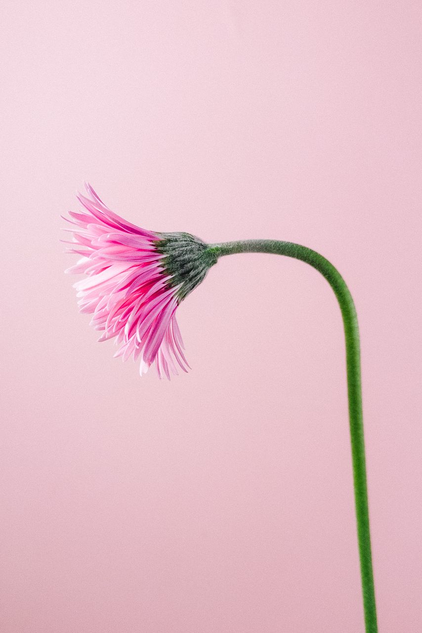 - 俯きがちな個体も。ピンとさせたい時は、茎がまっすぐになるように新聞紙などでで巻いて水切りしましょう。巻くときに茎が折れないように注意。ありのままで高いところに飾って楽しむのも◎