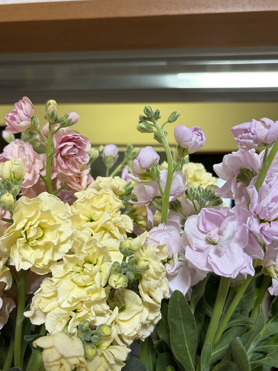 春の香り🌸🌼 ストックをカラフルに5本束ねました🕊️