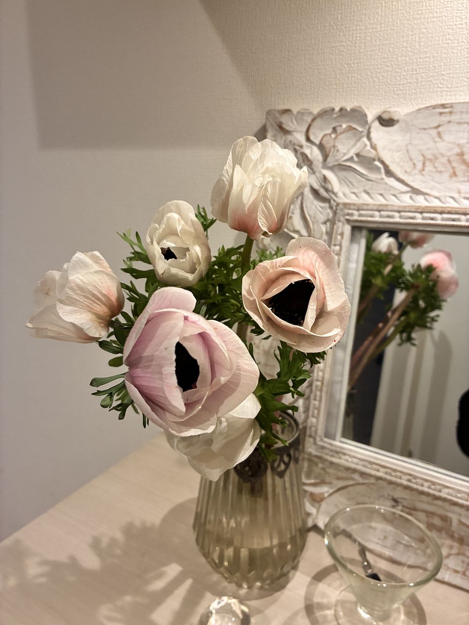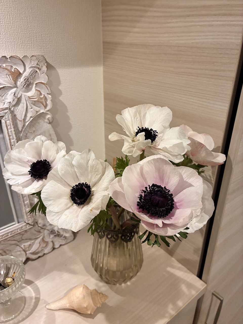 珍しいアネモネ「ホワイトブラックセンター」だけを束ねて。なかなか出回らない希少な品種です。たっぷり楽しんで🕊️