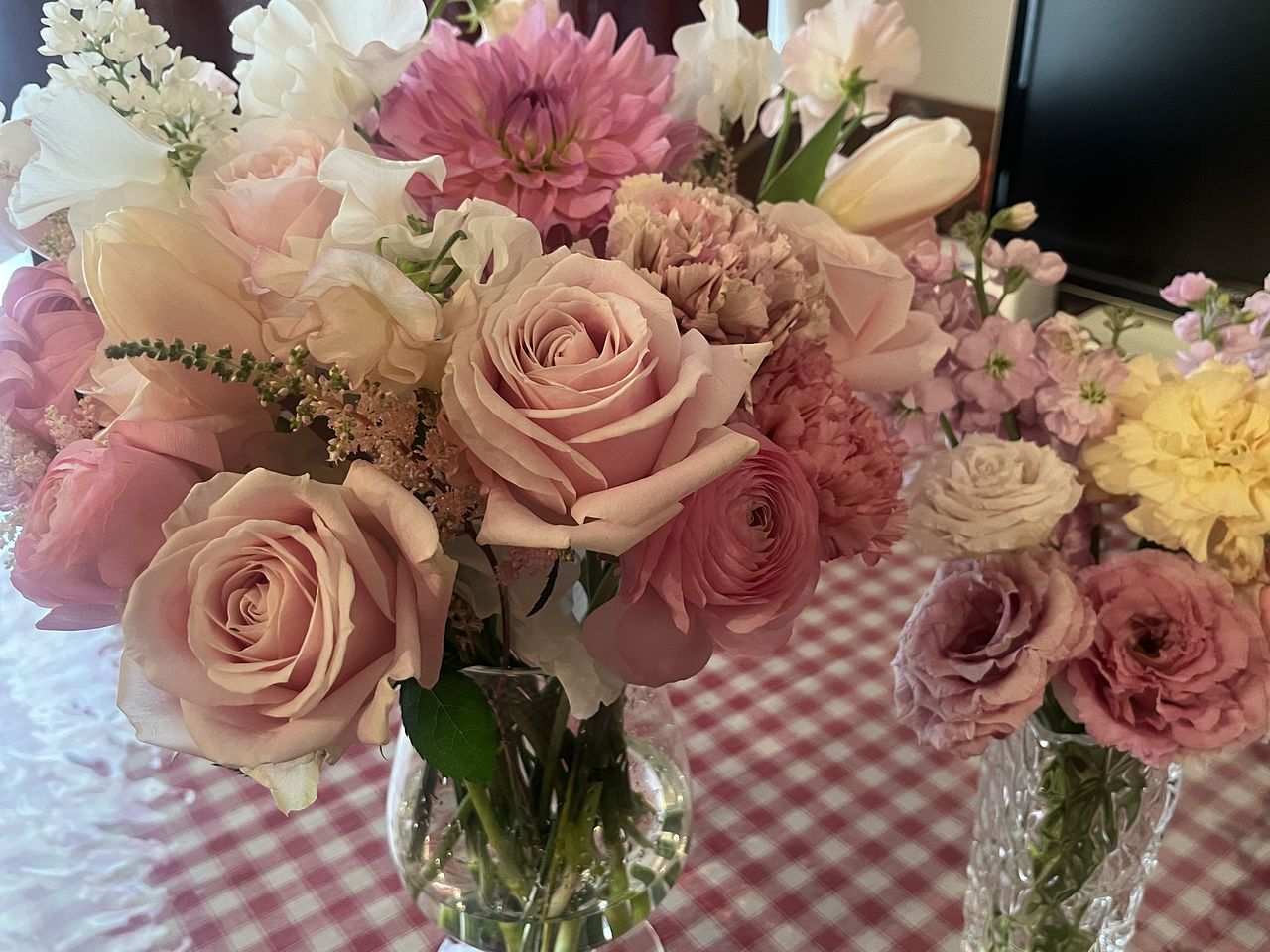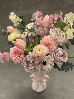 ボリュームたっぷりの優しい春色のブーケをありがとうございました✨ 絶妙な色合わせがとても素敵です! 春のお花は香りもいいのでとても癒されます🌷