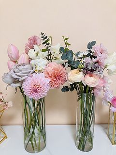 ボリュームいっぱいなので二つに分けました。 くすみピンクが可愛いです。 咲きかけのお花もあるので長く楽しめそう。