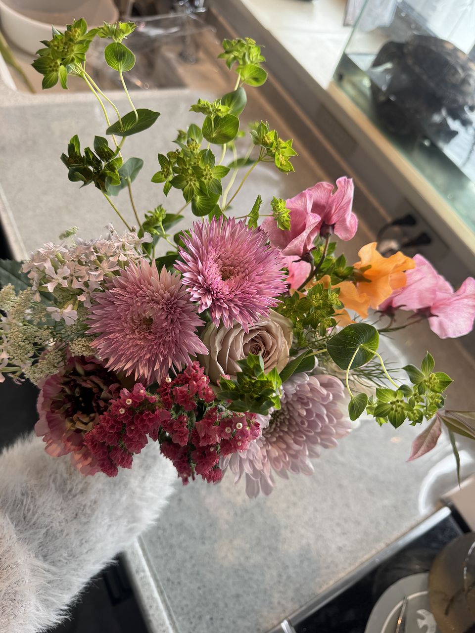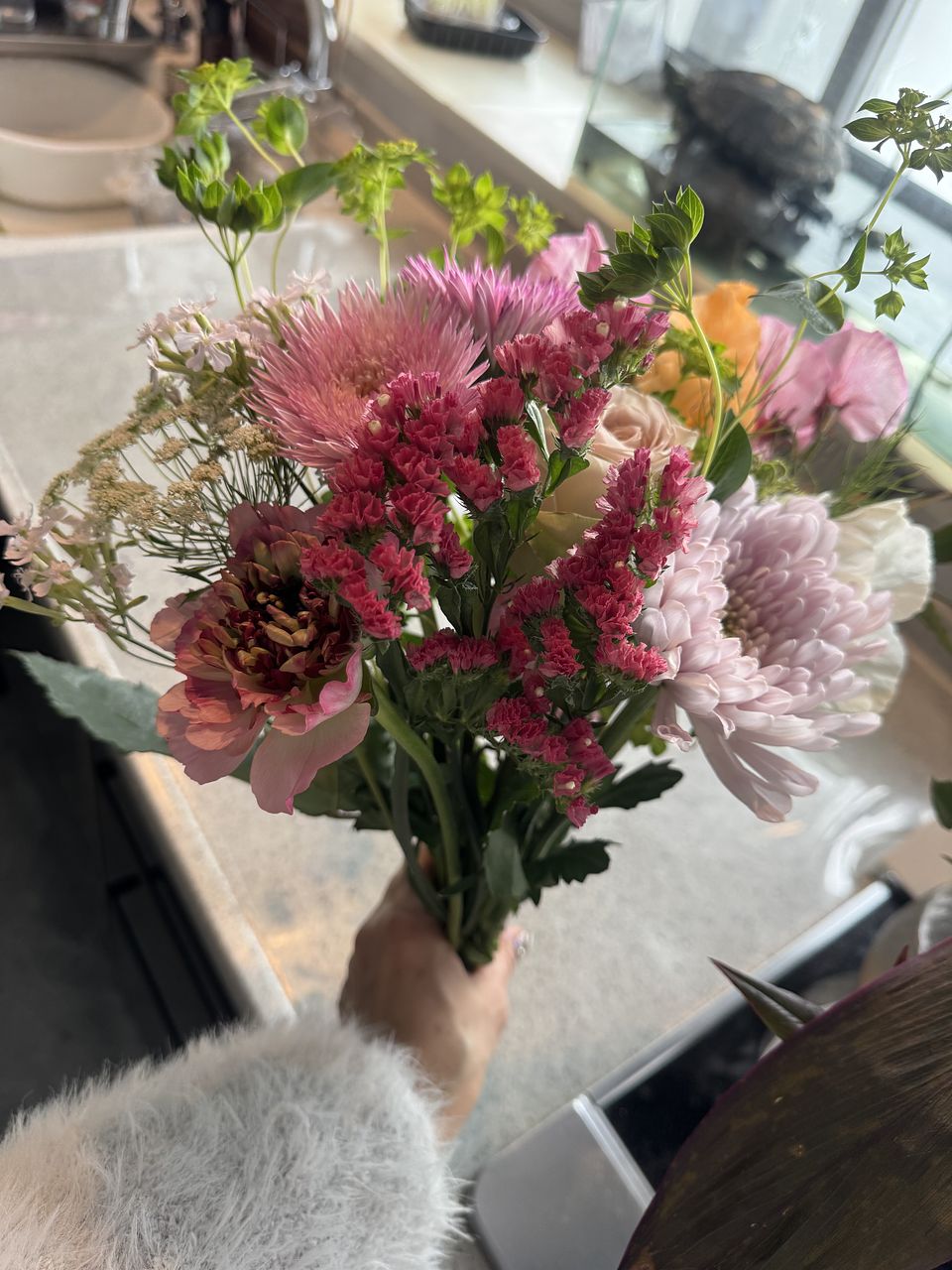 今いちばん旬のお花を、ブーケにしてお届けします。どんなお花が届くかは、箱を開けるまでのお楽しみ。
