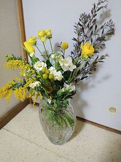姿形さまざまな黄色の花とミモザの組み合わせはお家を華やかな空間に✨