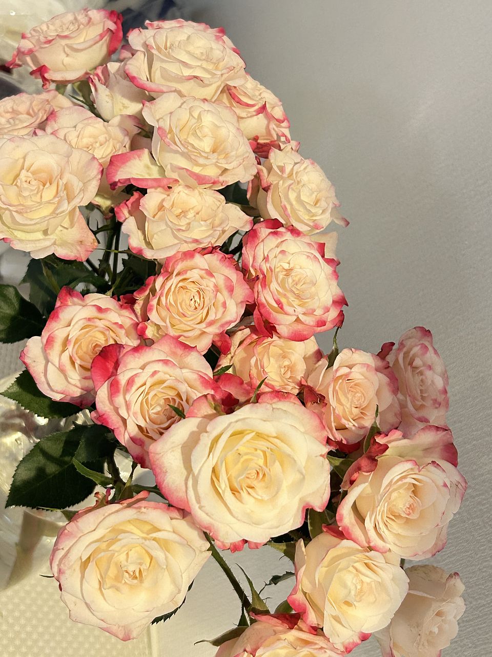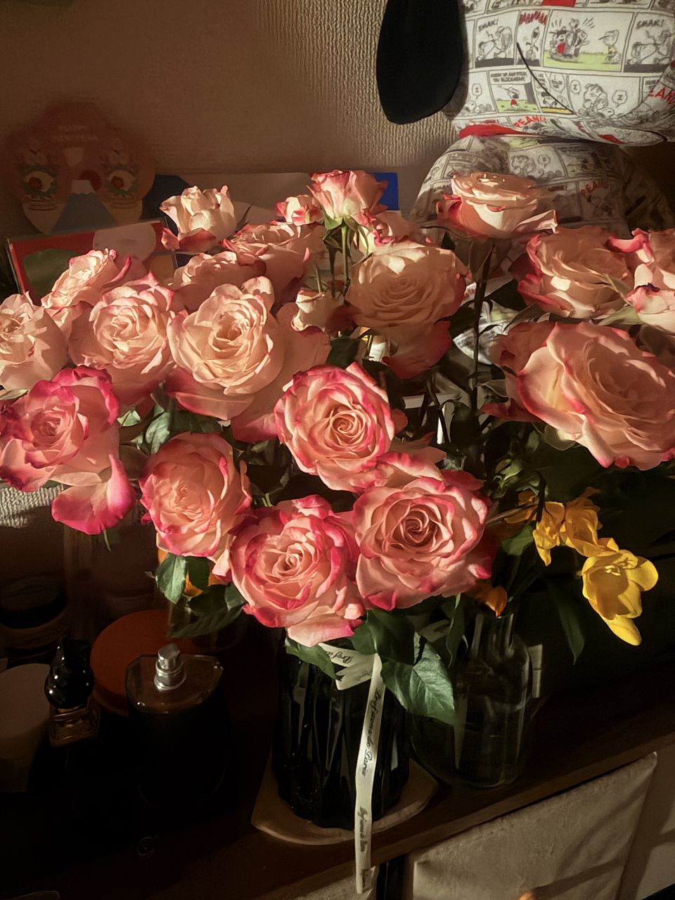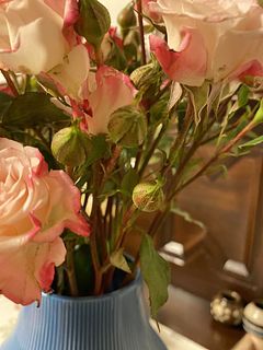 現物もすごく可愛くてお花購入割引で購入したフラワーベースとの相性も抜群です❣️めちゃくちゃ可愛いストロベリーミルクローズ🌹