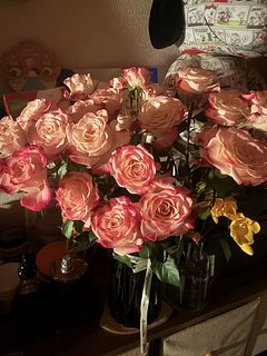 とっても可愛いバラで、色もボリュームも大満足です🥰 少し早いけど、自分へのバレンタインプレゼントです♪