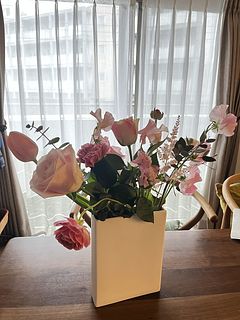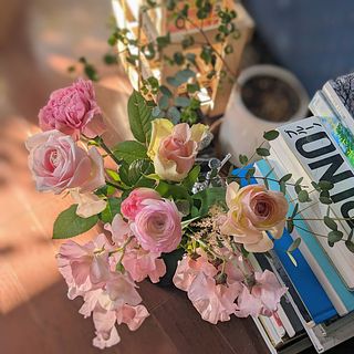 生花のいい香りに包まれてとても部屋が明るくなりました。 自宅で飾るお花は、過剰な包装も必要ありません。初めて利用しましたが、ブーケのイメージと価格を把握したうえで選べるので、ダイパとコスパともにいいと思います。 お花の中には開ききったものもありましたが、どれくらい日持ちするのか少し気がかりです。