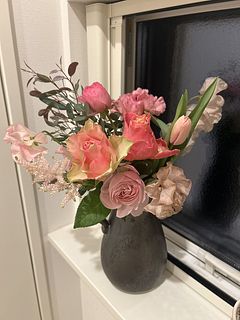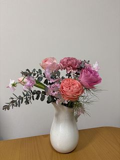 ボリュームもあり、ピンクの華やかなお花が沢山入っていました!注文するお花はいつも新鮮で元気です。花瓶も購入しましたが、ブーケにピッタリでした。