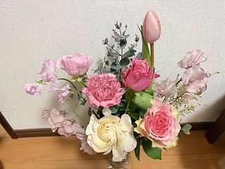 柔らかいピンクの色合いのお花が届き、一気に春めいて華やいだ気分になりました。素敵です